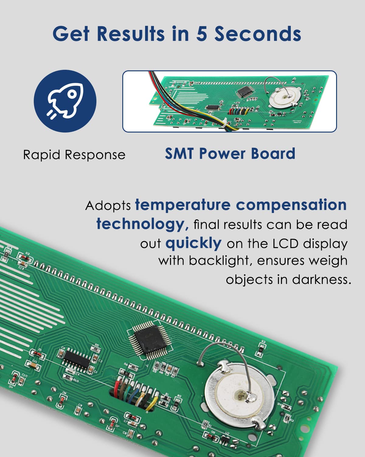 With Integrated SMT Power Board which adopts temperature compensation technology, final results can be read out easily on the LCD display with backlight, ensures weigh objects in darkness. Useful for precise weighing in laboratory, pharmacy, jewelry store, chemical plant and so on.