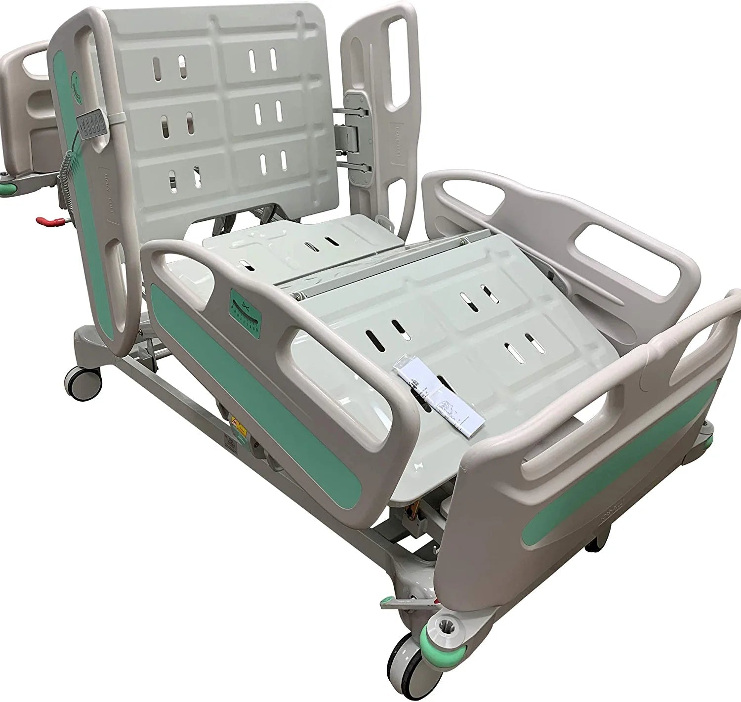 Full Electric Hospital Bed offers offers capabilities of a fully equipped hospital bed within the comforts of your home. There is quiet and smooth raising of the head, knees, and feet, providing maximum comfort for the patient or your loved one. Additionally, the bed can move in Trendelenburg and reverse Trendelenburg positions. There are integrated angle degree displays to allow for precise positioning. In addition, the bed has the battery backup system for the emergency non-electric power. The bed is manufactured with a aluminum and stainless steel frame and is fitted with hardened plastic rails.