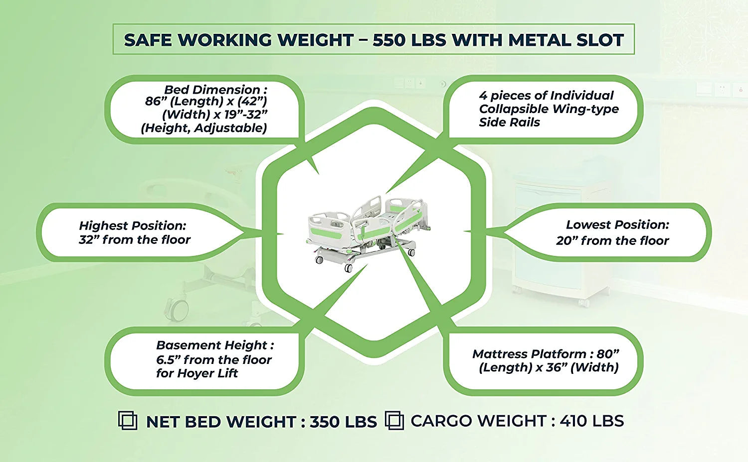 CENTRAL LOCKING SYSTEM: The Bed comes with a central locking System with 5 inch aluminum caster wheels and brake pedals, which allow for ease of movement, even on carpeted surfaces. These features allow the bed to be easily moved on various surfaces within your home or facility.