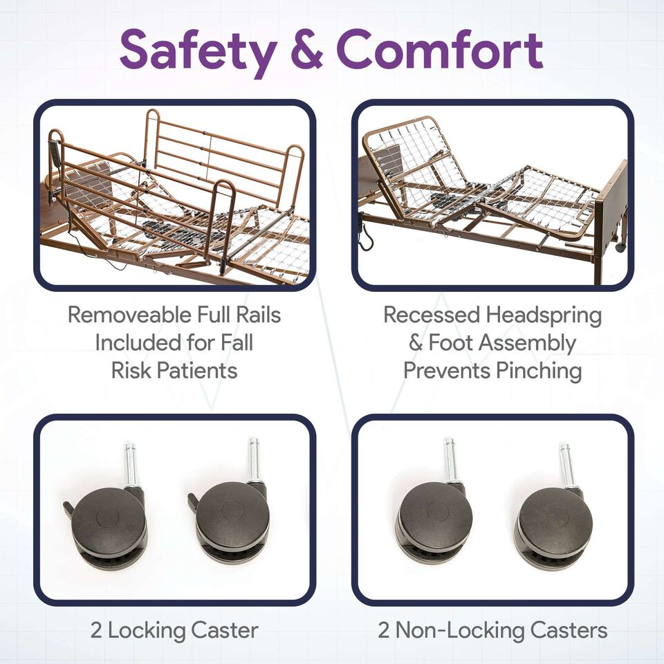 - Full Rails Included: Equipped with a pair of full rail safety guards for fall risk patients.