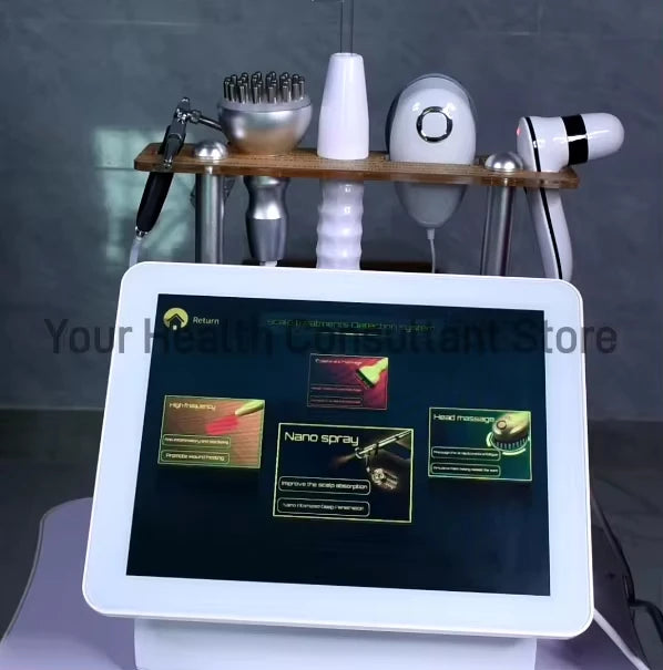 The 15-Inch Multifunctional 5-in-1 Scalp Massage and High-Frequency Spa Device is a comprehensive solution for scalp care and relaxation. Equipped with a 15-inch screen and 1000W resolution, this device offers advanced scalp treatments with customizable features.