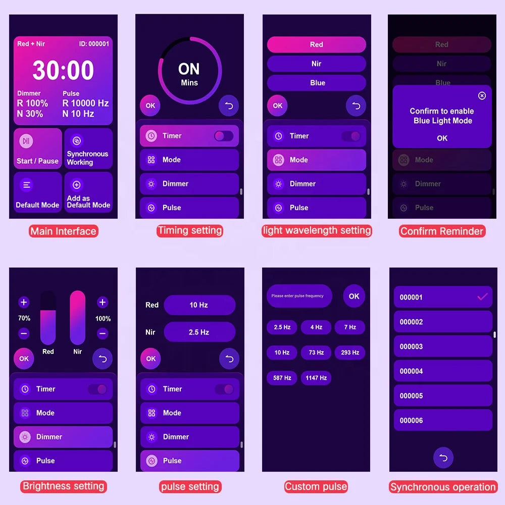 - Touch Screen Control: Customize your sessions with Light Mode, Timer, Dimmer, and Pulse Control options.