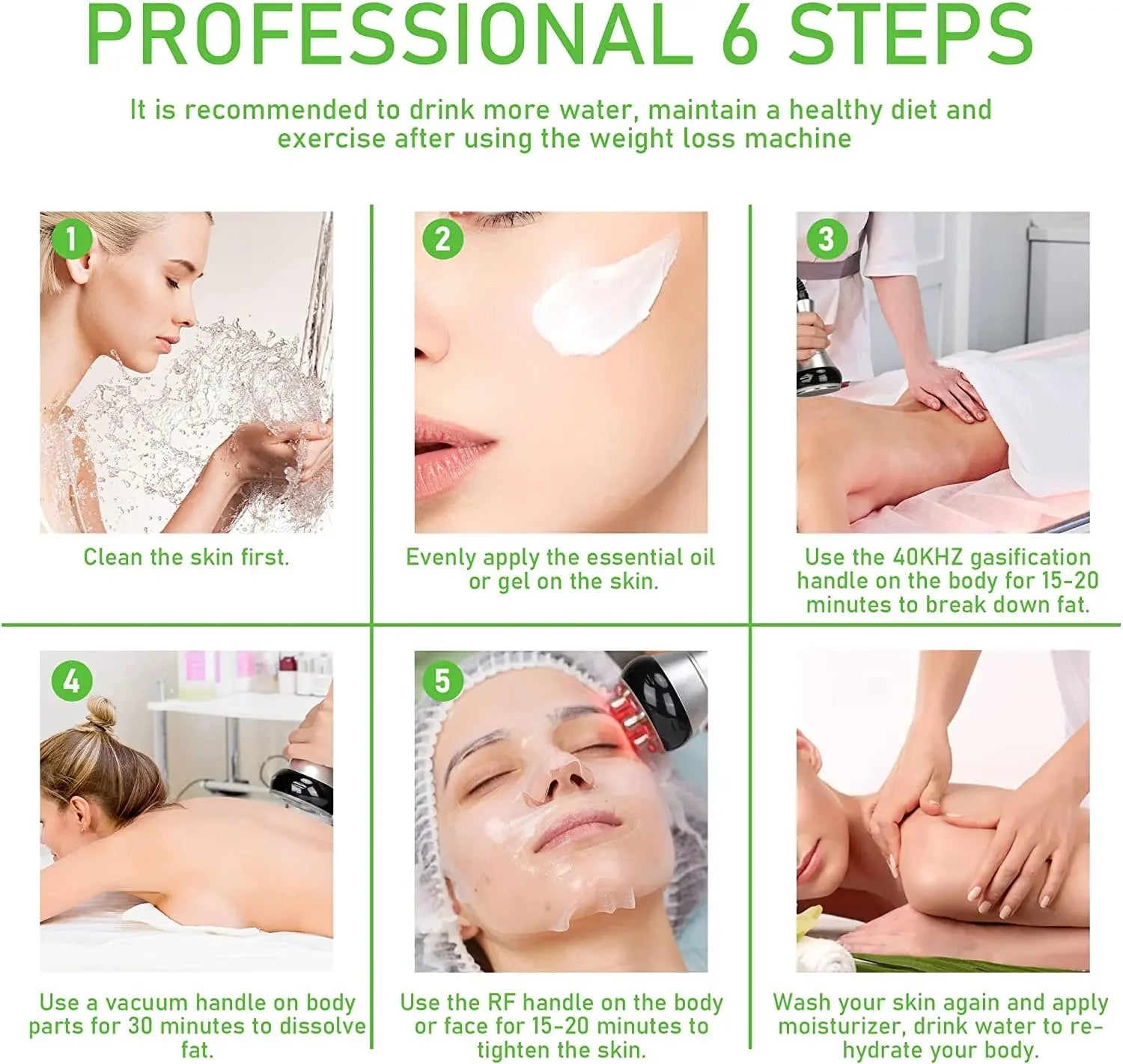 Each beauty head provides specific benefits tailored to different areas of the body and face, making this tool a versatile solution for slimming, firming, and skin rejuvenation.