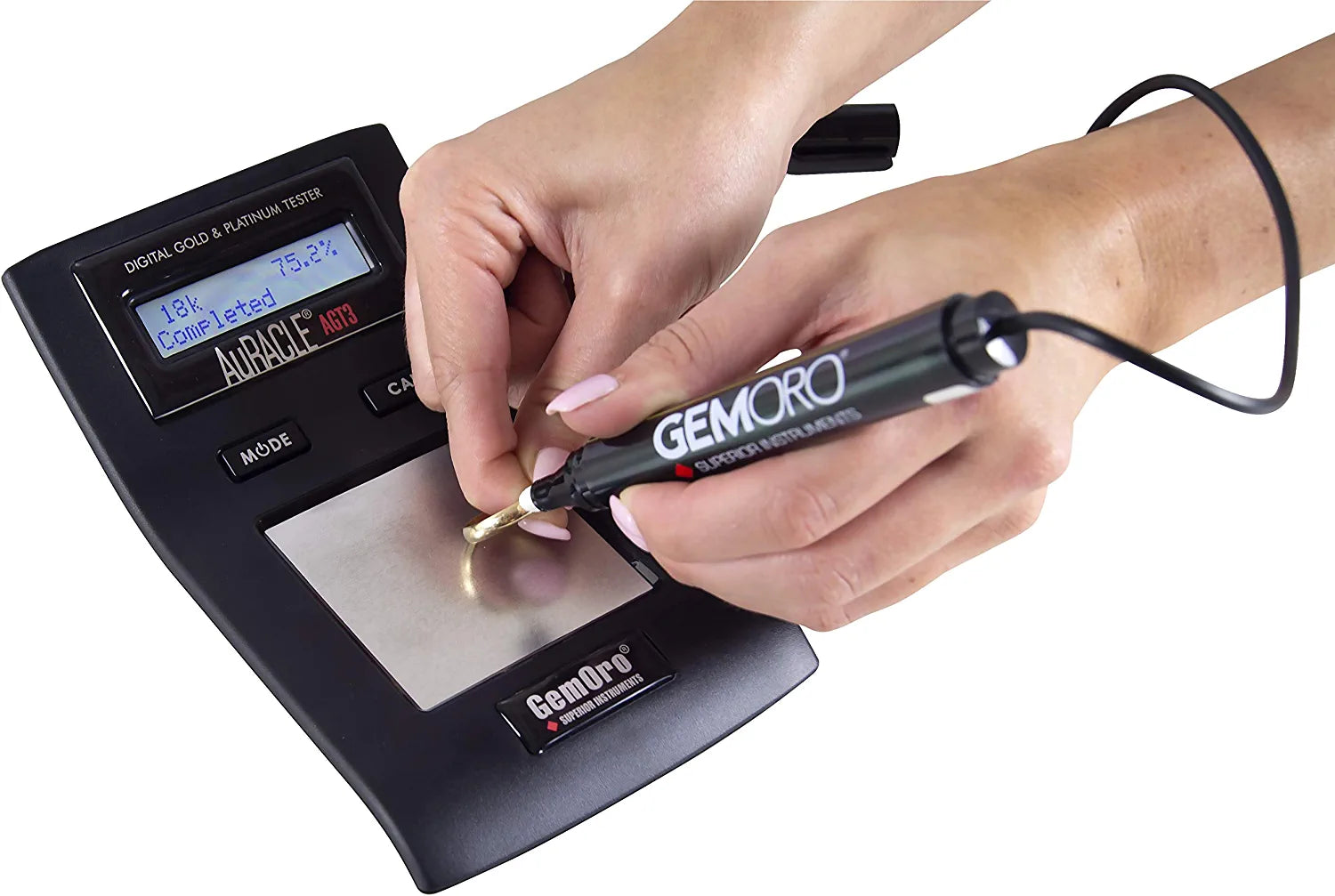 Tests all colors of gold from 6K to 24K and tests platinum