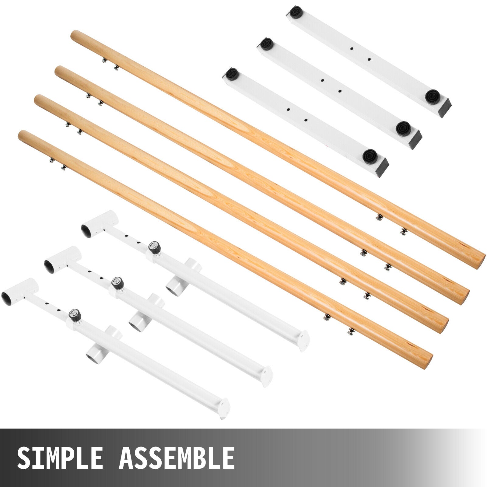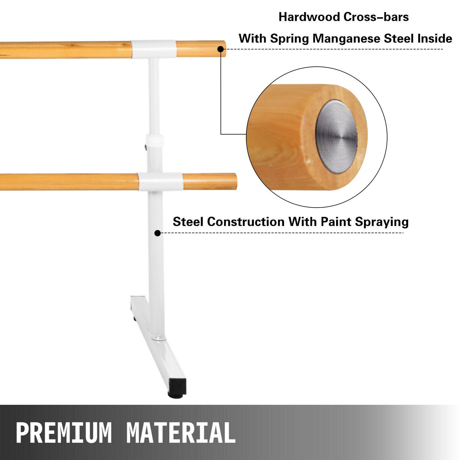 - 【DURABLE AND SAFE】- Ballet bar. Durable brackets made of steel covered by spraying paint are anti-rust, anti-corrosion, never get tarnish and designed for years of use. 5cm/2in dia. sanded hardwood cross-bars made of natural pine with 2cm/0.78in dia. spring manganese steel inside is smooth, eco-friendly, sweat-proof, yet has high flexibility. Our barre bar for home effectively helps dancers to improve balance and strength.