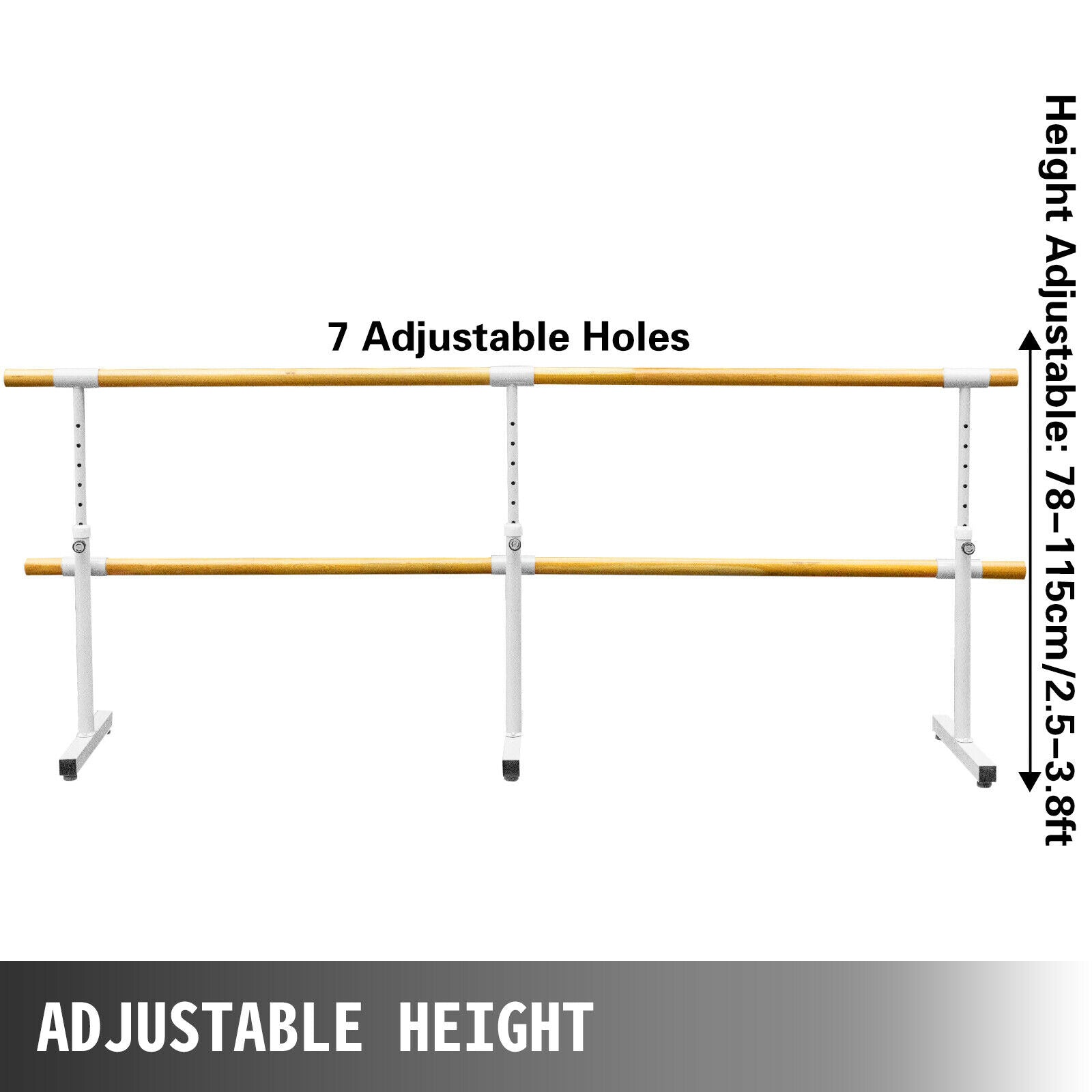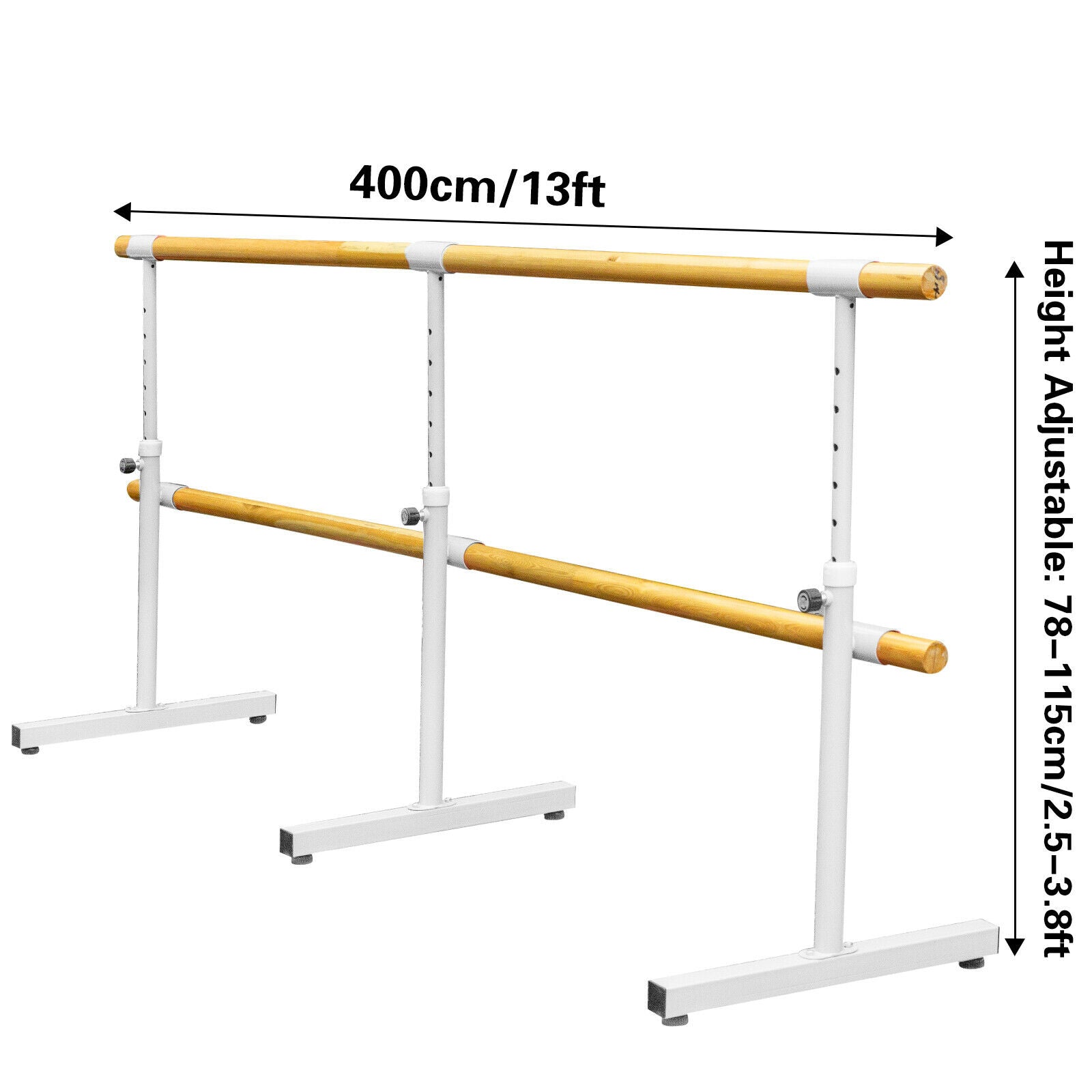 - 【FULLY ADJUSTABLE HEIGHT】- The lower bar is fixed. The height of the upper bar can be adjusted from 78cm/2.5ft to 115cm/3.8ft off the floor with a simple turn of the knob. High-quality ballet barre designed for dancers of all ages and all heights. The double bar design allows you to explore more possibilities of exercise and dance. Capacity: 150kg/330lbs.