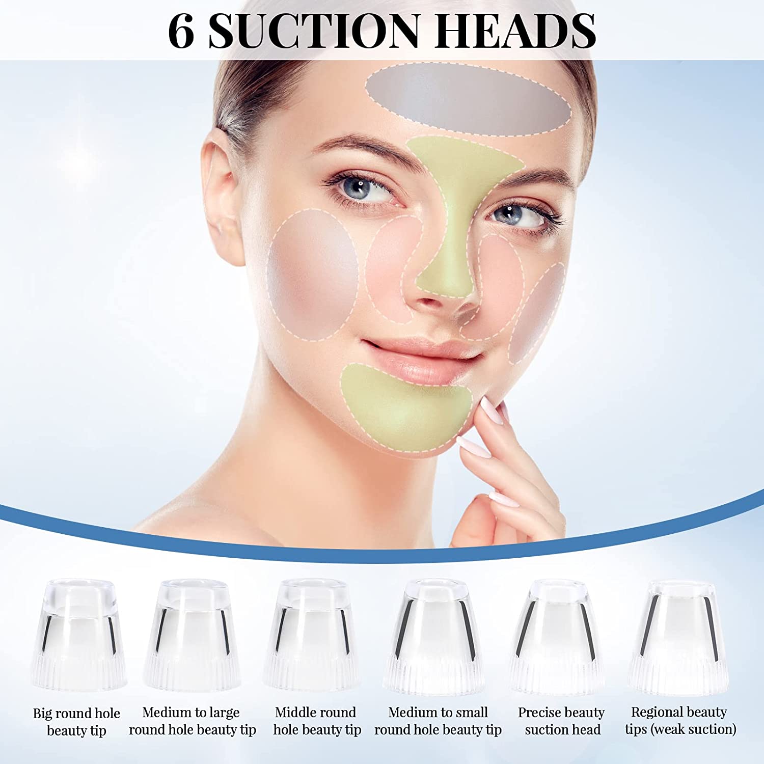 Please start from a lower strength level and choose an appropriate probe. And move the head on the skin to suck out blackheads, acne, grease, and so on.