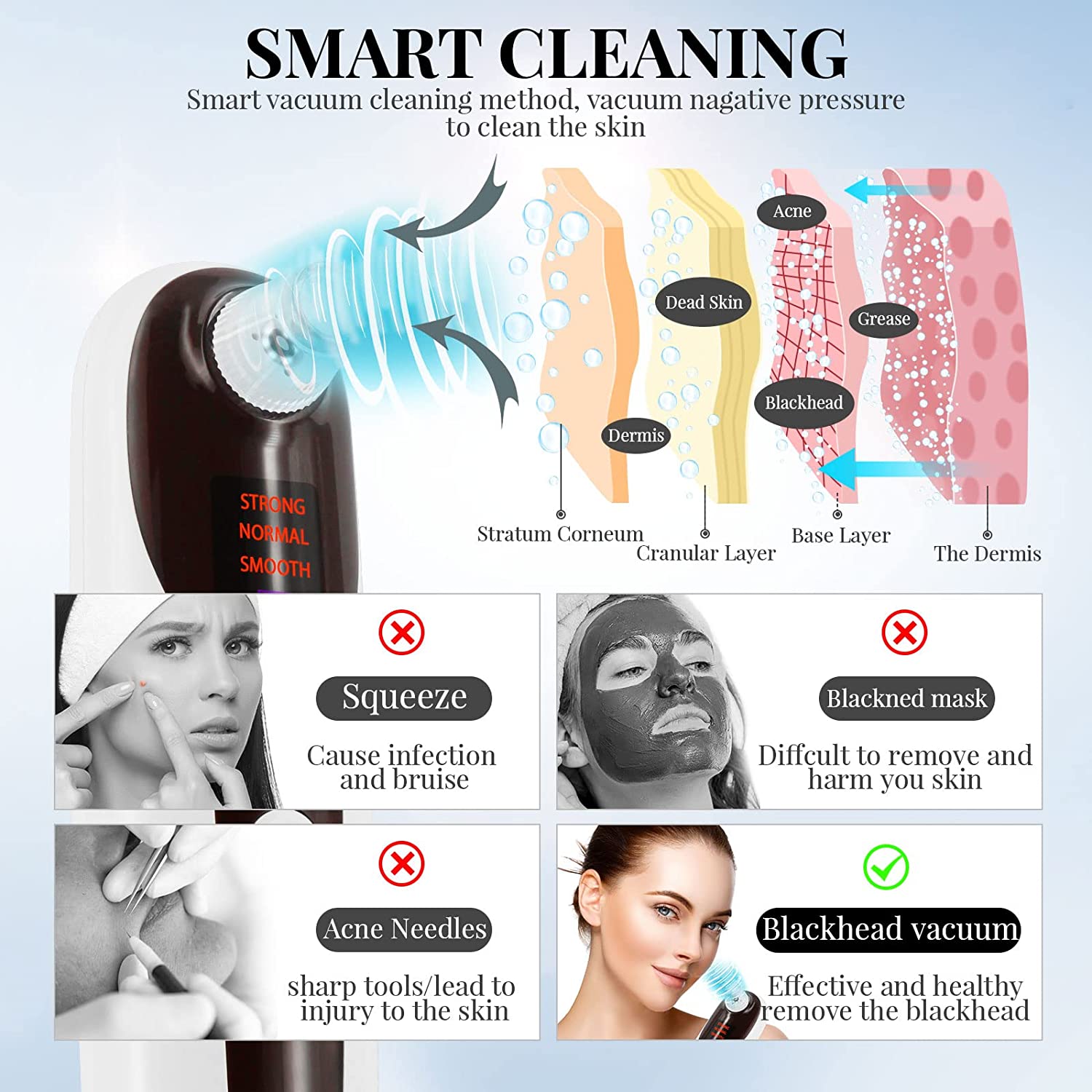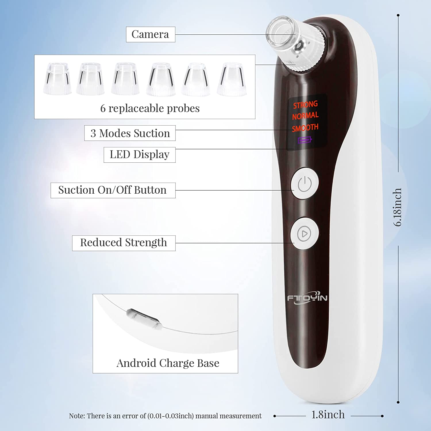 - Blackhead Vacuum Technology : Leading technology without hurting your skin, clean pores safely and effectively, remove blackheads, whiteheads, treat acne. FTOYIN blackhead remover vacuum cleaner made of eco-friendly material ABS, non-toxic, non-irritating, which can be safely used on the face. Super powerful pore vacuum can directly achieve deep cleaning, increase blood circulation and skin elasticity, lessen wrinkle, shrink pores, smooth fine lines.