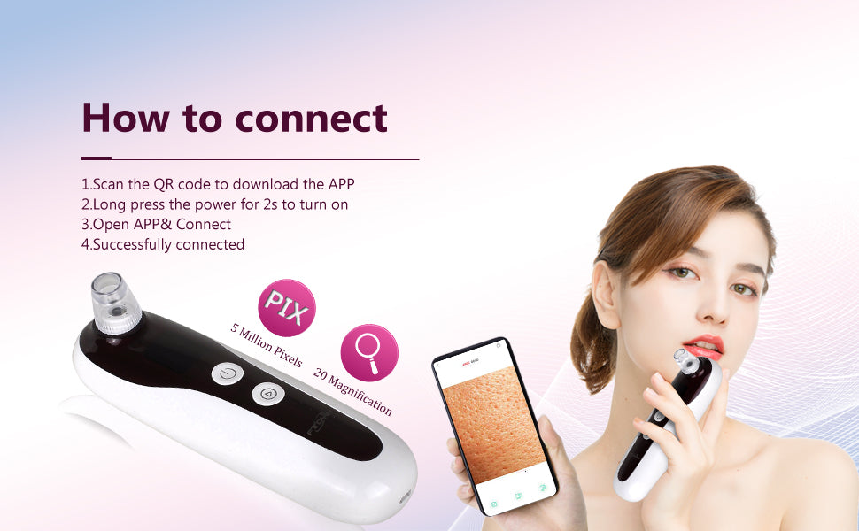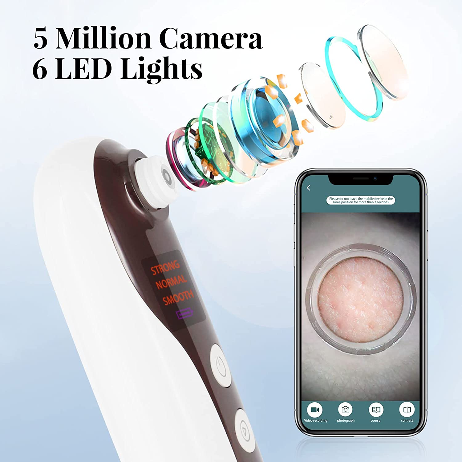 Our black head remover suctioner uses the latest technology, adding a high-definition lens to the vacuum, and you can clearly see the blackhead removal effect. AI intelligent algorithm, 3 suction levels, 6 replaceable suction heads, suction power of up to 65 KPA, it can effectively remove the dirt inside the pores, quickly remove the excess oil in the blackheads and pores, deeply clean the pores, and make the pores delicate and firm.