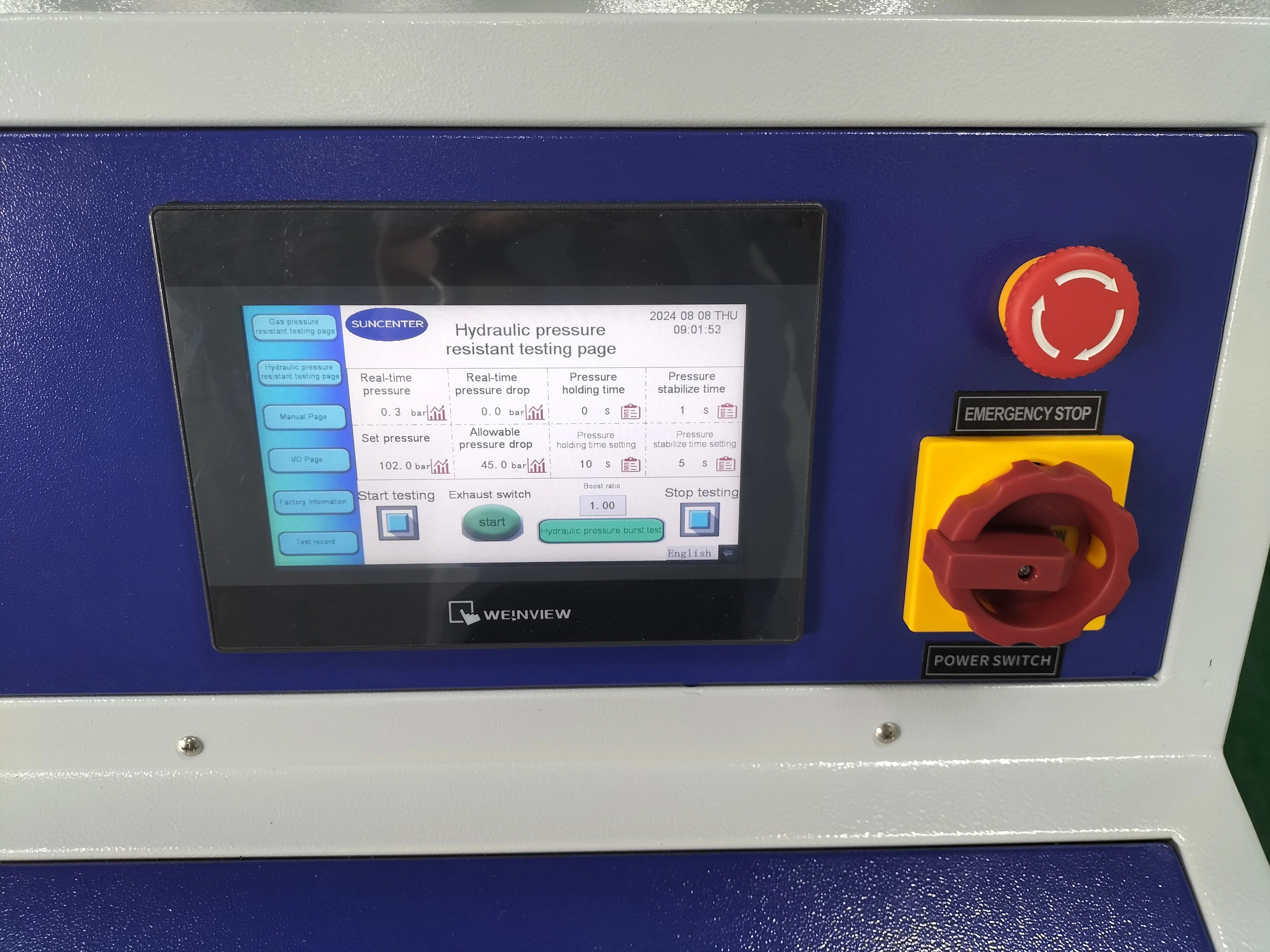 - Activate the touch screen and enter the "Hydraulic pressure testing" page. Set relevant parameters for the test.
