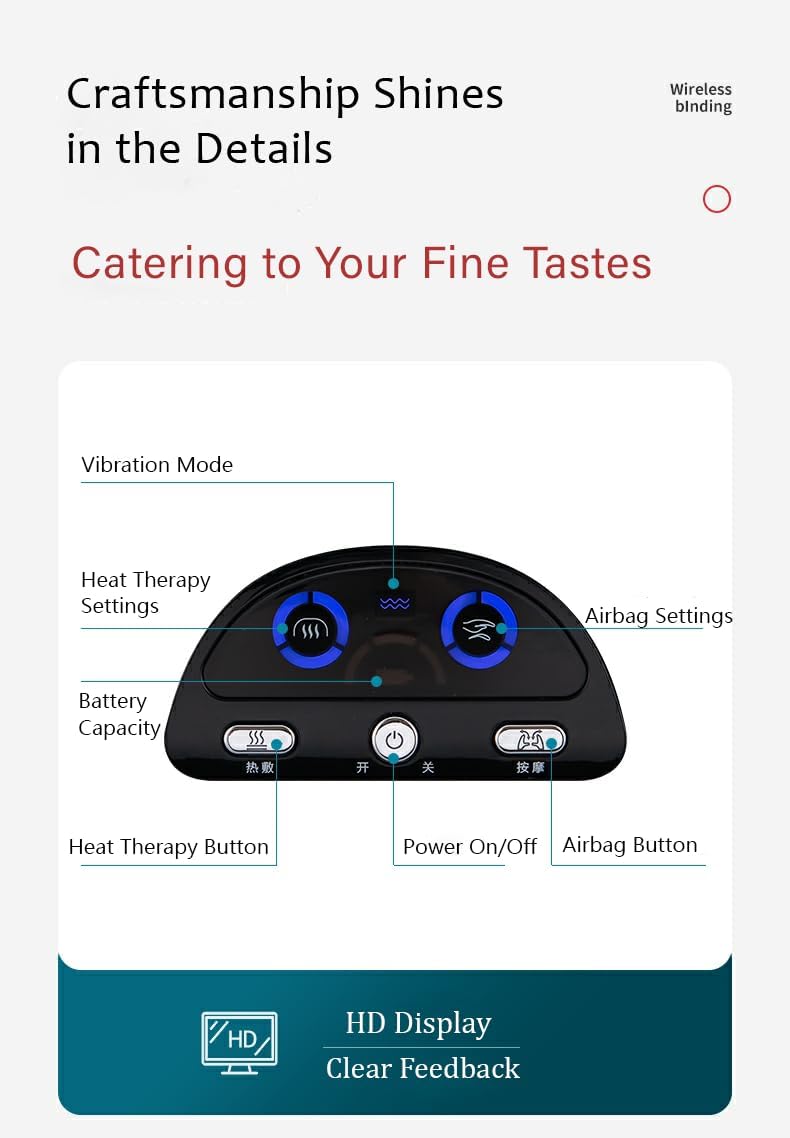 Versatile Massage Modes: Indulge in diverse massage experiences with our air compression massage and vibration therapy. Customizable intensity levels cater to your specific needs, while strategically positioned airbags ensure comprehensive relaxation.