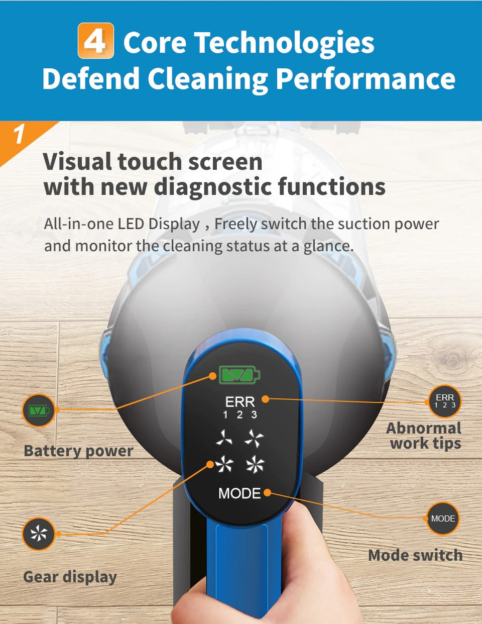 Cordless Vacuum Cleaner, 23000Pa Powerful Suction, LED Touch Screen, Best Wireless Handheld Vacuum for home