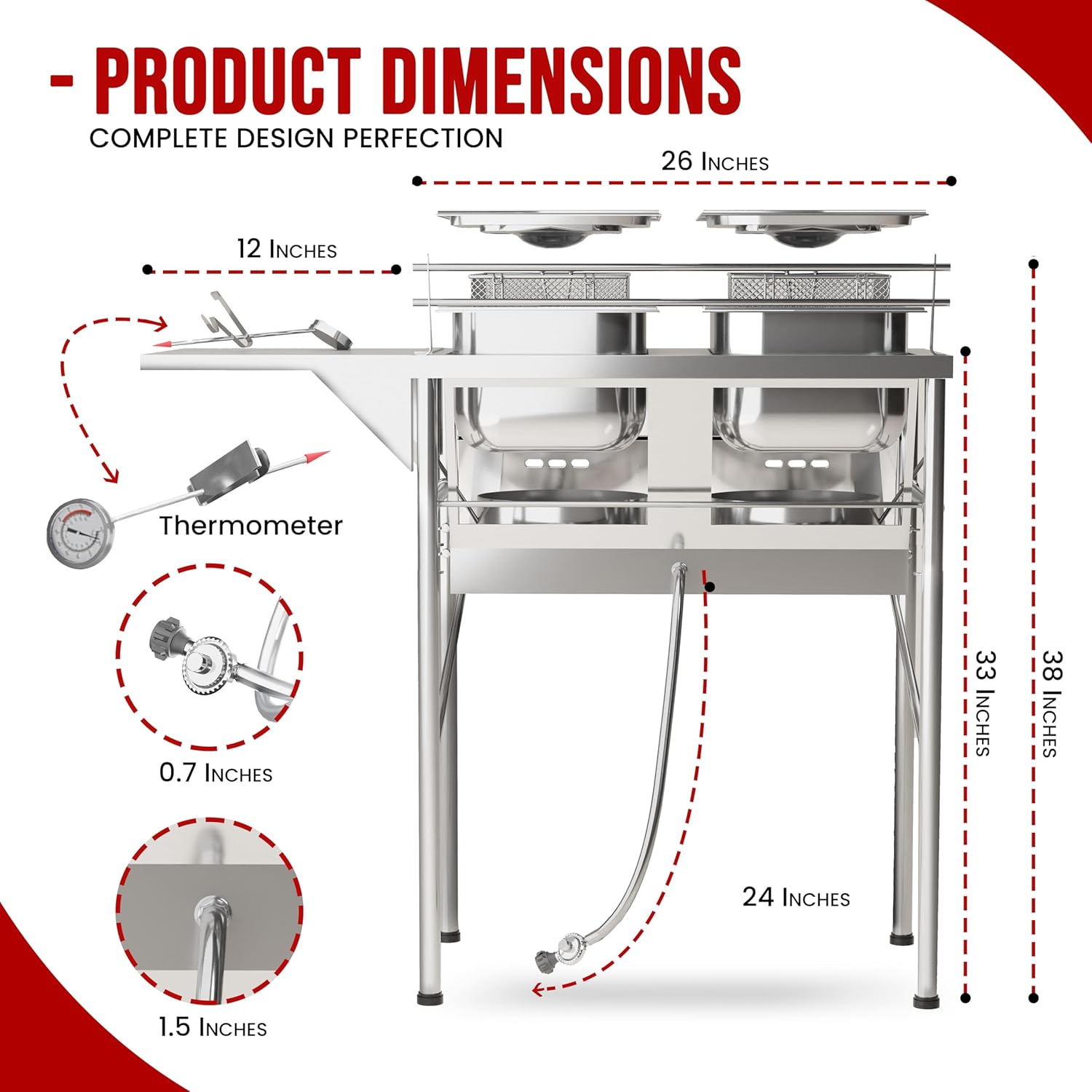Dual-Tank Propane Deep Fryer – Outdoor Stainless Steel Fryer with High-Output Burners & Precision Temperature Control – Ideal for BBQs, Camping, Food Trucks & Catering