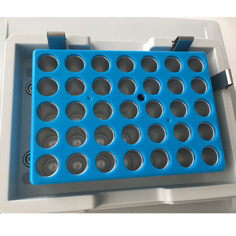 The Mini Dry Bath is a micro-processor controlled heating block with heater (heating types) or semiconductor refrigeration (cooling types) technology. It adapts onboard use, smart, light and convenient for movement, suit for any kind of occasions. The types 100I are with PCR thermo cover technology to prevent evaporation. The type 100F is with fan for heat dissipation, which makes temperature down much faster than nature cooling.