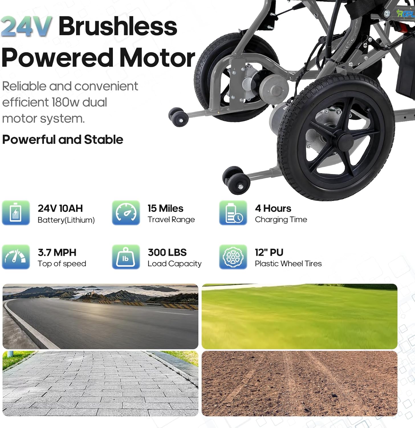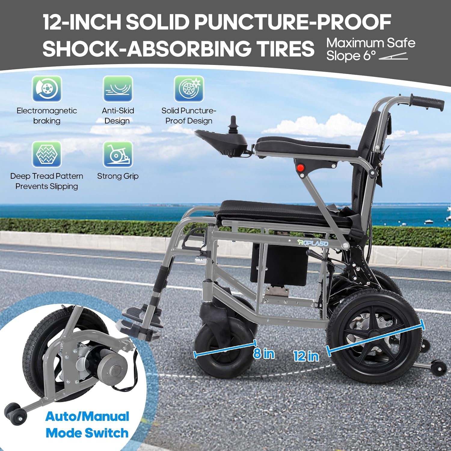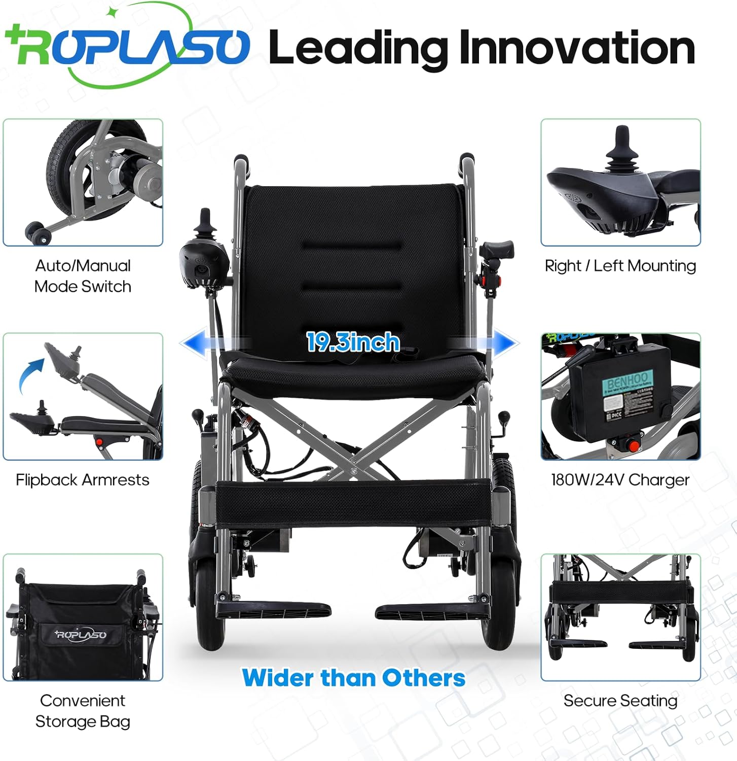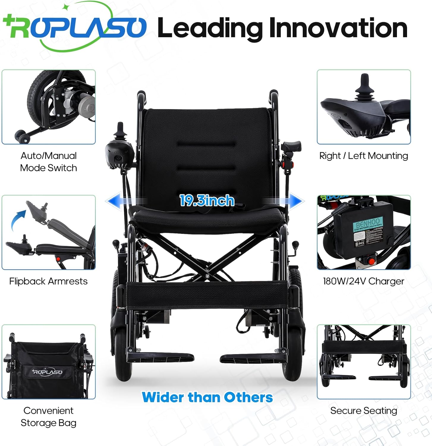 Built to support up to 300 lbs, this wheelchair also features sturdy armrests suitable for rehabilitation exercises. It folds in seconds with a single button press, making it ideal for air travel or car transport. Approved for aircraft and cruise travel, the ROPLASO electric wheelchair is your trusted companion for independence and mobility.