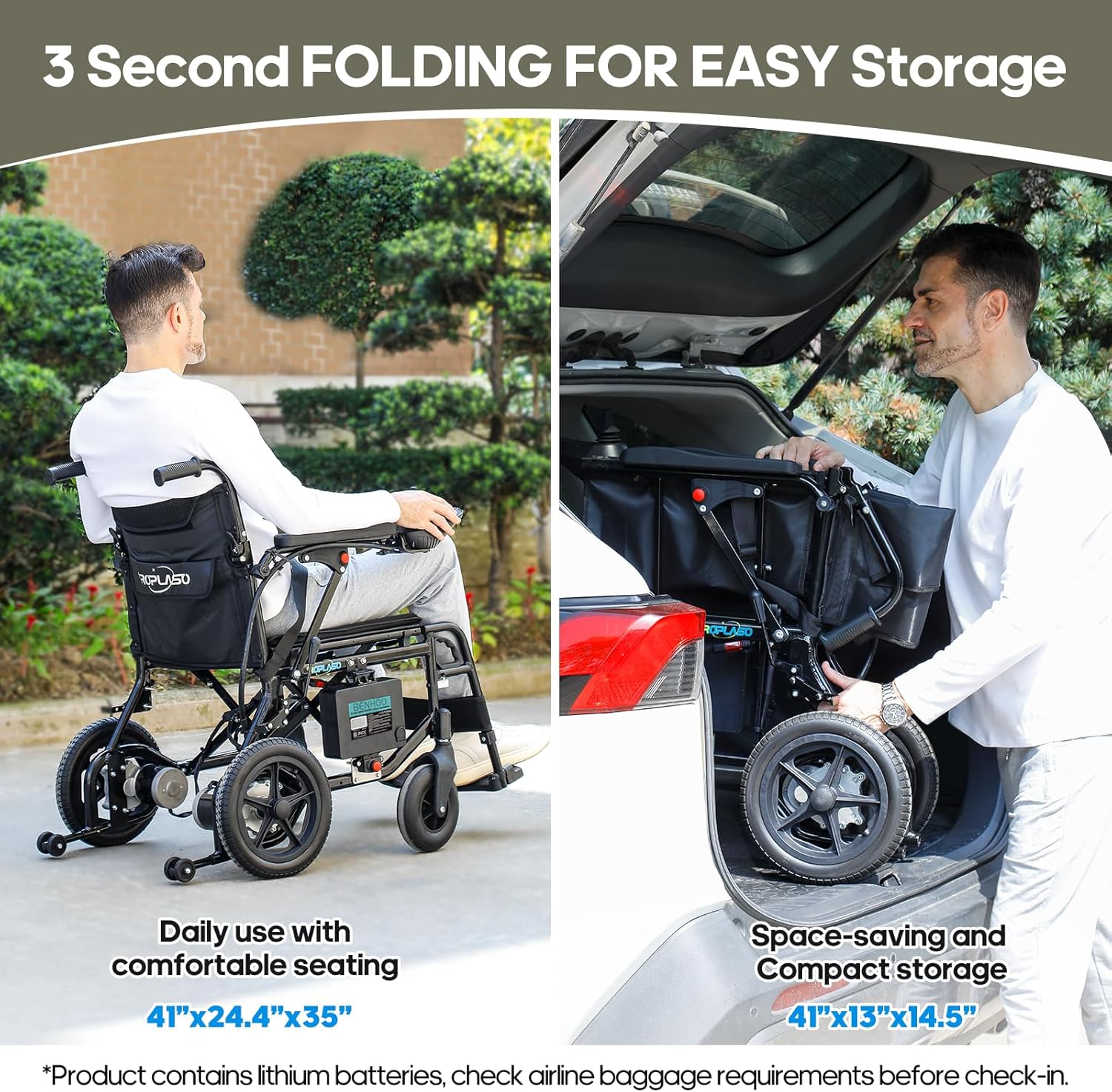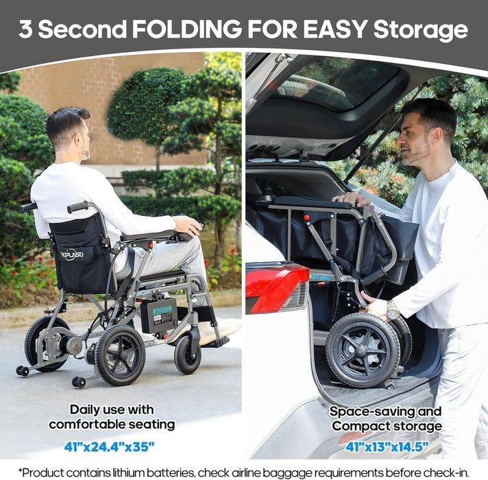 Designed for ease of use, this lightweight power wheelchair weighs just 47 lbs—lighter than traditional aluminum alloy models—while offering superior durability. It’s easy for elderly users to lift and can be folded in just 3 seconds with the push of a button, making it perfect for travel. Simply fold and store it effortlessly in the trunk of a car.