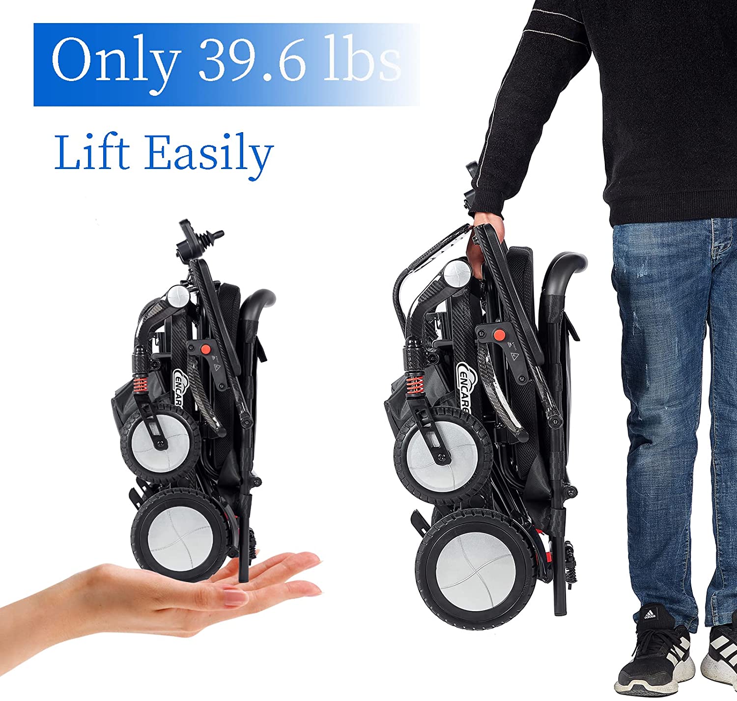 • The frame is made of carbon fiber material, which is very light,only 39.6 lbs(without battery), can be lifted easily, the strength of carbon fiber is 6 times that of iron, bearing weight 220 lb