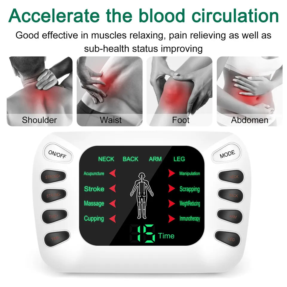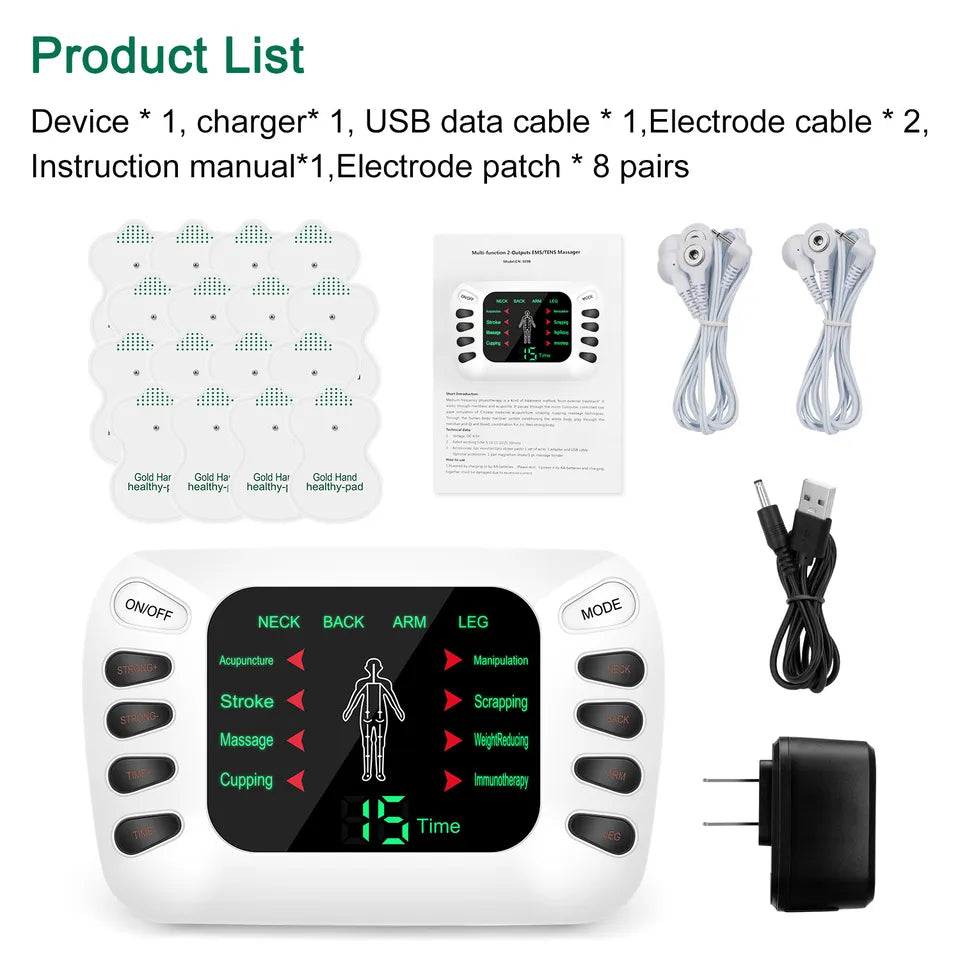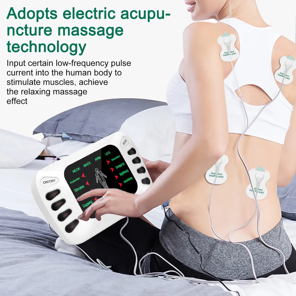 - 8 Stimulation Modes: Choose from Stroke, Manipulation, Massage, Acupuncture, Cupping, Scraping, Weight Reducing, and Immunotherapy modes for personalized pain relief.
