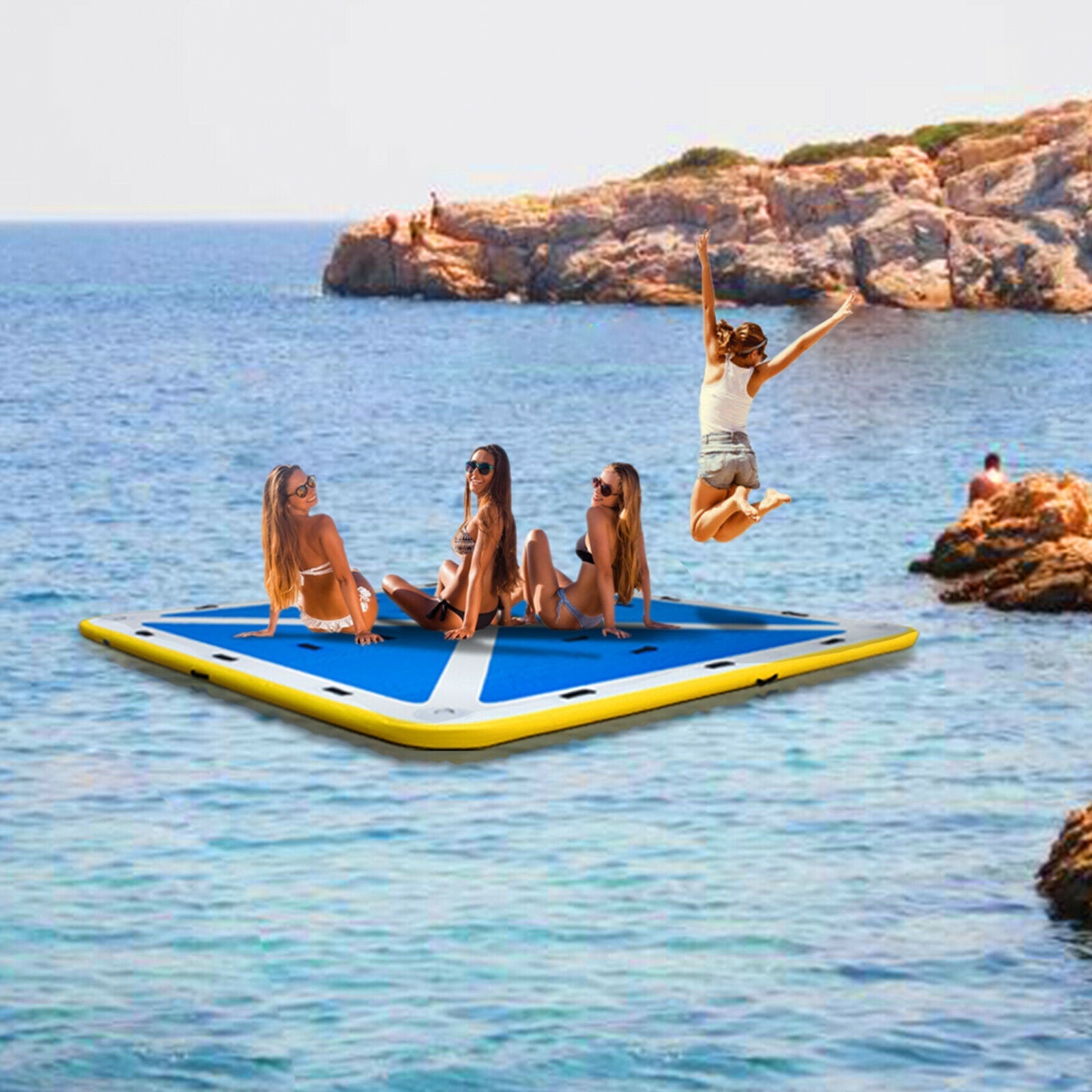 Floating Fishing Dock PVC Inflatable Dock Platform 8x8 ft w/ Electric Air Pump