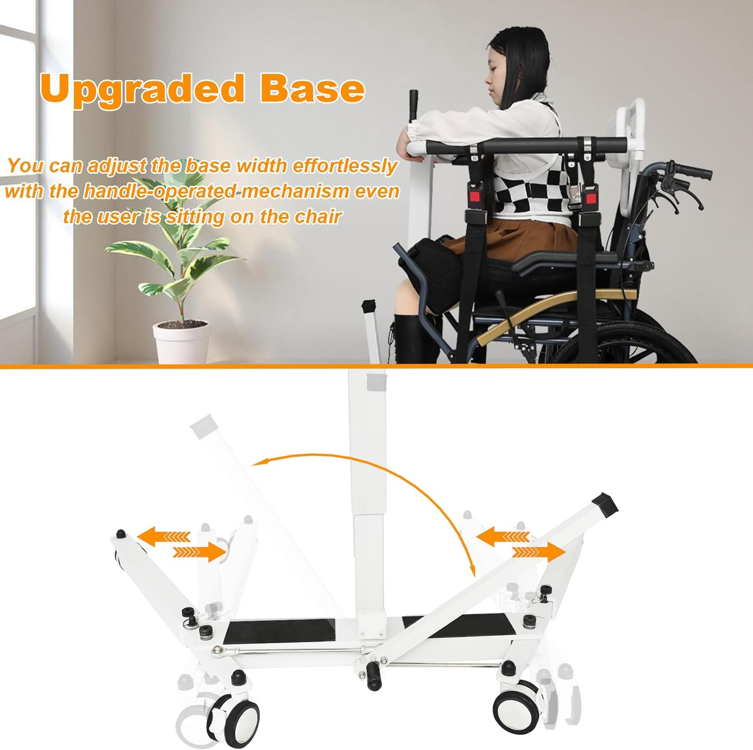 With an upgraded base, effortlessly adjust the width between 20.6-46 inches with the handle-operated mechanism, ensuring user comfort and stability. The chair supports up to 287 lbs and incorporates a stable structural design for enhanced safety. Additional features include a cushioned sling, lumbar support, and front wheels with brakes for added security.