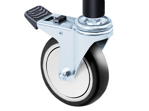 Featuring 4" front wheels with foot brakes and 12" rear wheels, it ensures smooth movement across various surfaces. Lock wheels before sitting or standing for added safety.