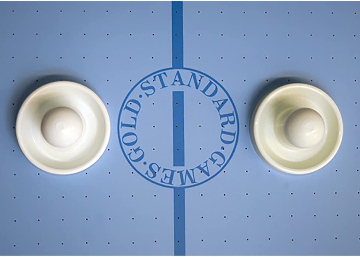 Solid, low-profile, professional-style aluminum rails, pro-quality action with the full size 3-3/16" diameter puck, wear-resistant playfield laminate surface and face-off circle.