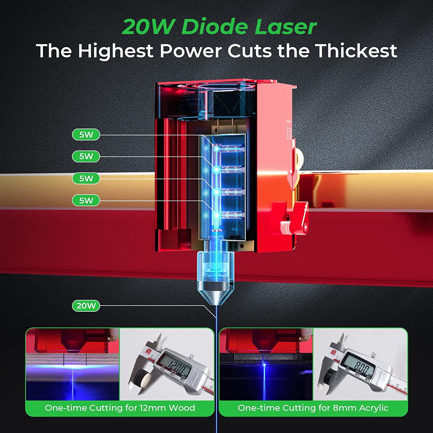 The Laser Engraver is designed for those who require high cutting performance and engraving precision. With 20W laser output power and a machine power of 120W, it is a cost-effective solution that rivals traditional CNC machines. The engraving speed reaches a maximum of 24000mm/min, making it an excellent choice for mass production and high-difficulty, high-precision models.