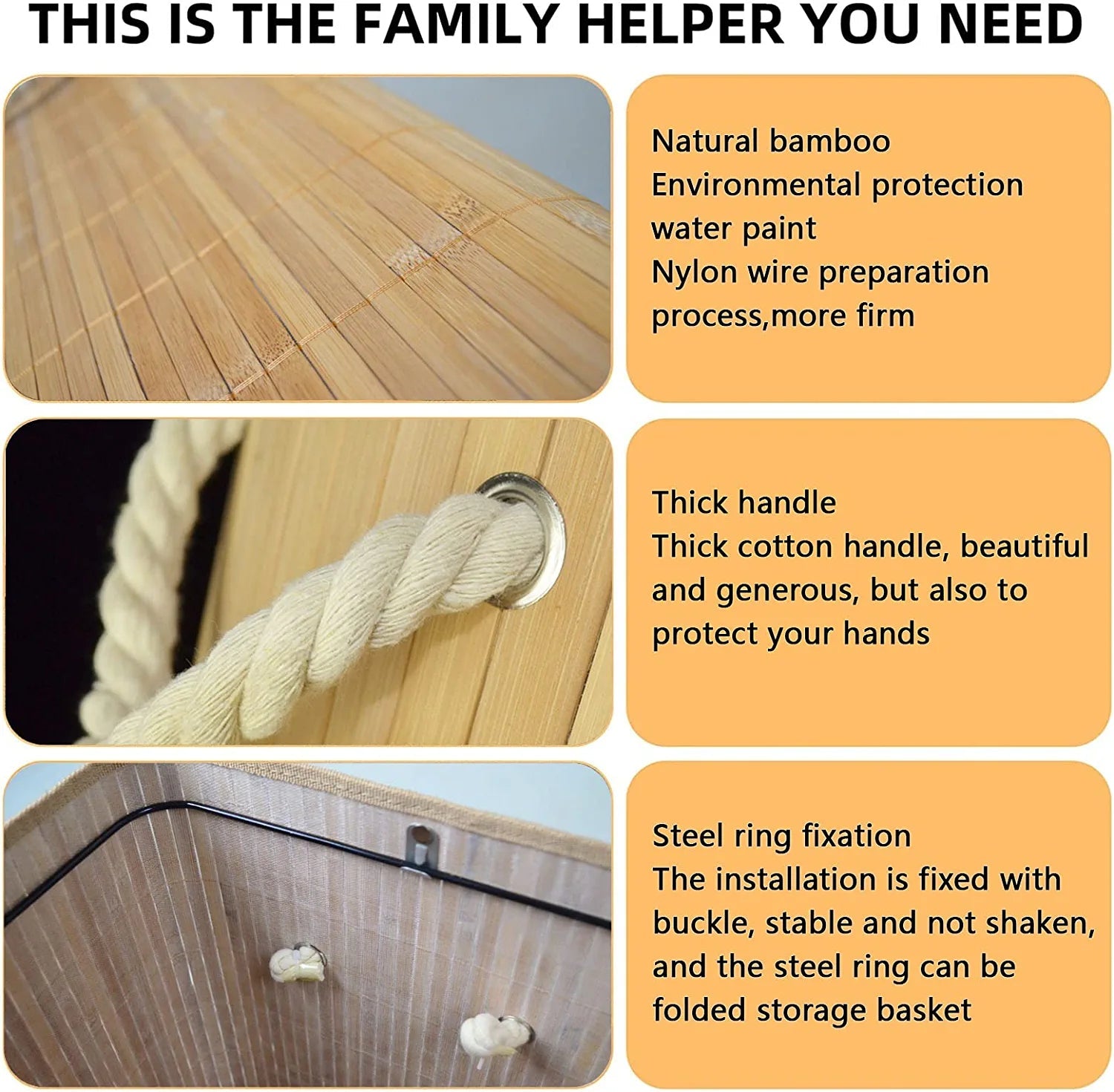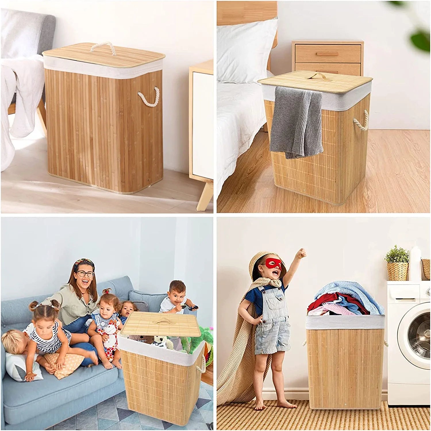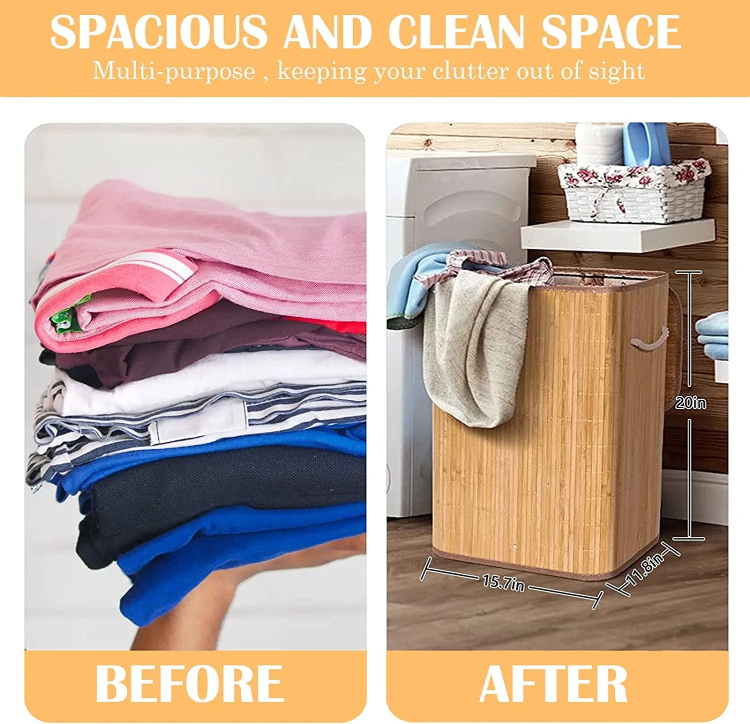 HIGH QUALITY BAMBOO MATERIAL: Our new laundry hamper is made of premium natural bamboo material, which is durable, lightweight and harmless. It's suitable for frequent use in your bedroom, laundry room or bathroom.