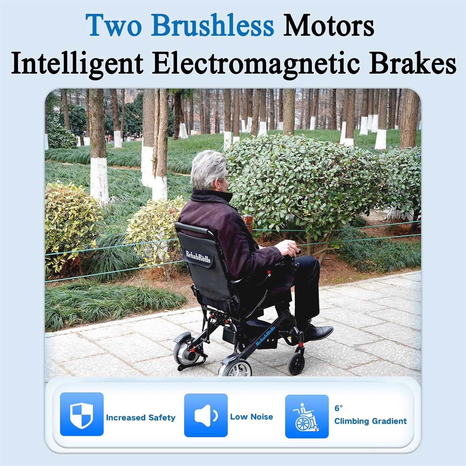 Safety Enhanced: This motorized wheelchair features dual controllers - a main controller and a rear controller - offering double assurance for your peace of mind. It includes a built-in electromagnetic braking system and reliable safety belts, incorporating multiple safety measures to enhance security.