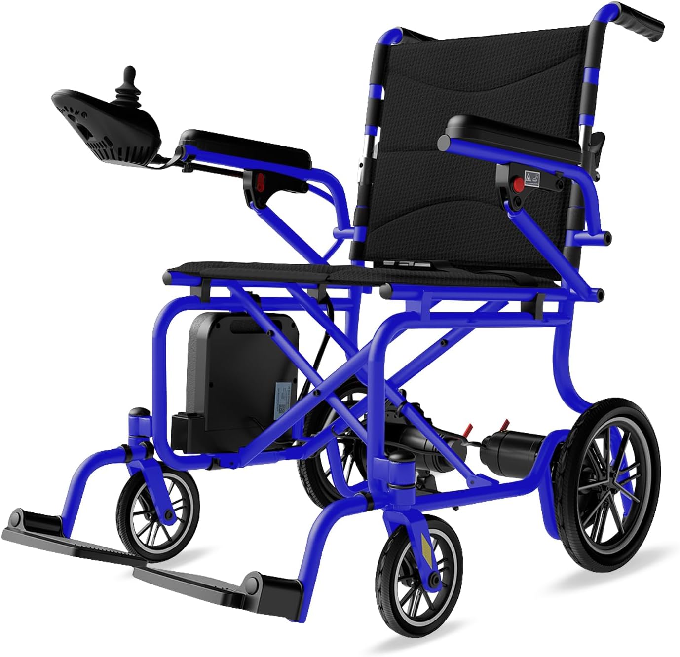Lightweight Foldable Electric Wheelchair for Adults – Portable, Motorized Mobility Scooter with Electromagnetic Brakes (Black & Blue)