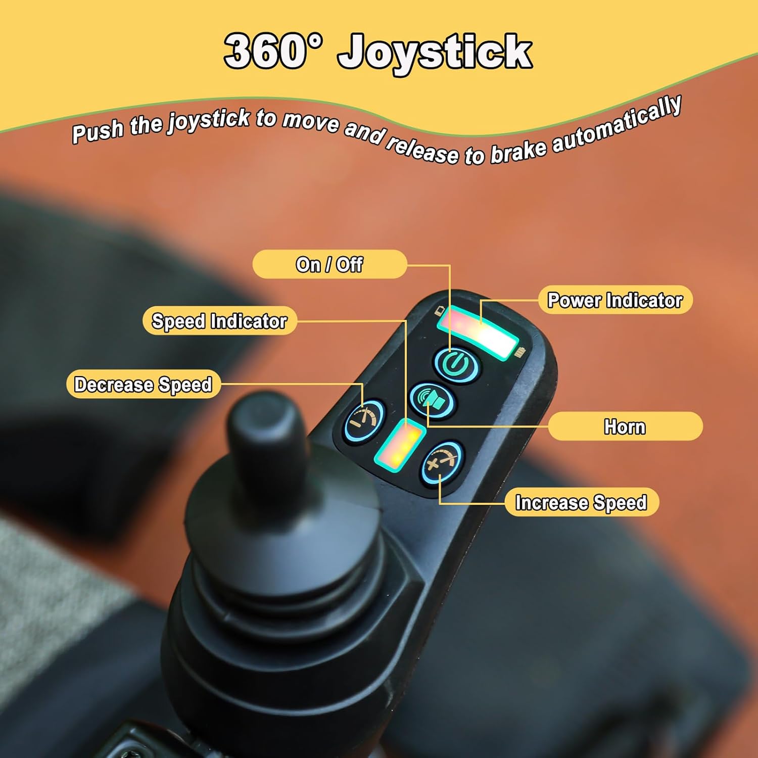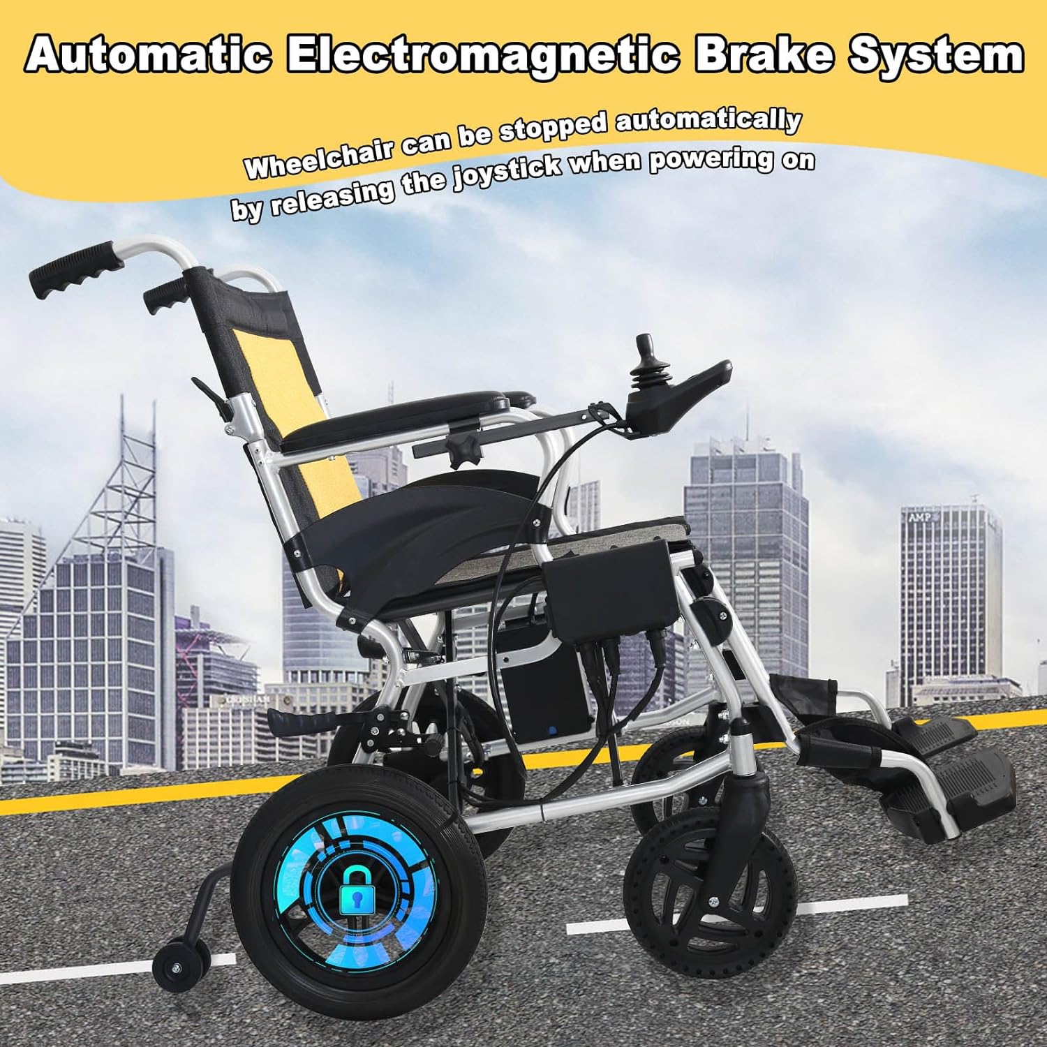 Safety at Every Turn: Move with confidence thanks to the built-in safety features, including a maximum speed of 3.7 mph and an automatic electromagnetic braking system. The wheelchair stops immediately when you release the joystick, and manual brakes on both wheels prevent accidental slipping when getting in or out.