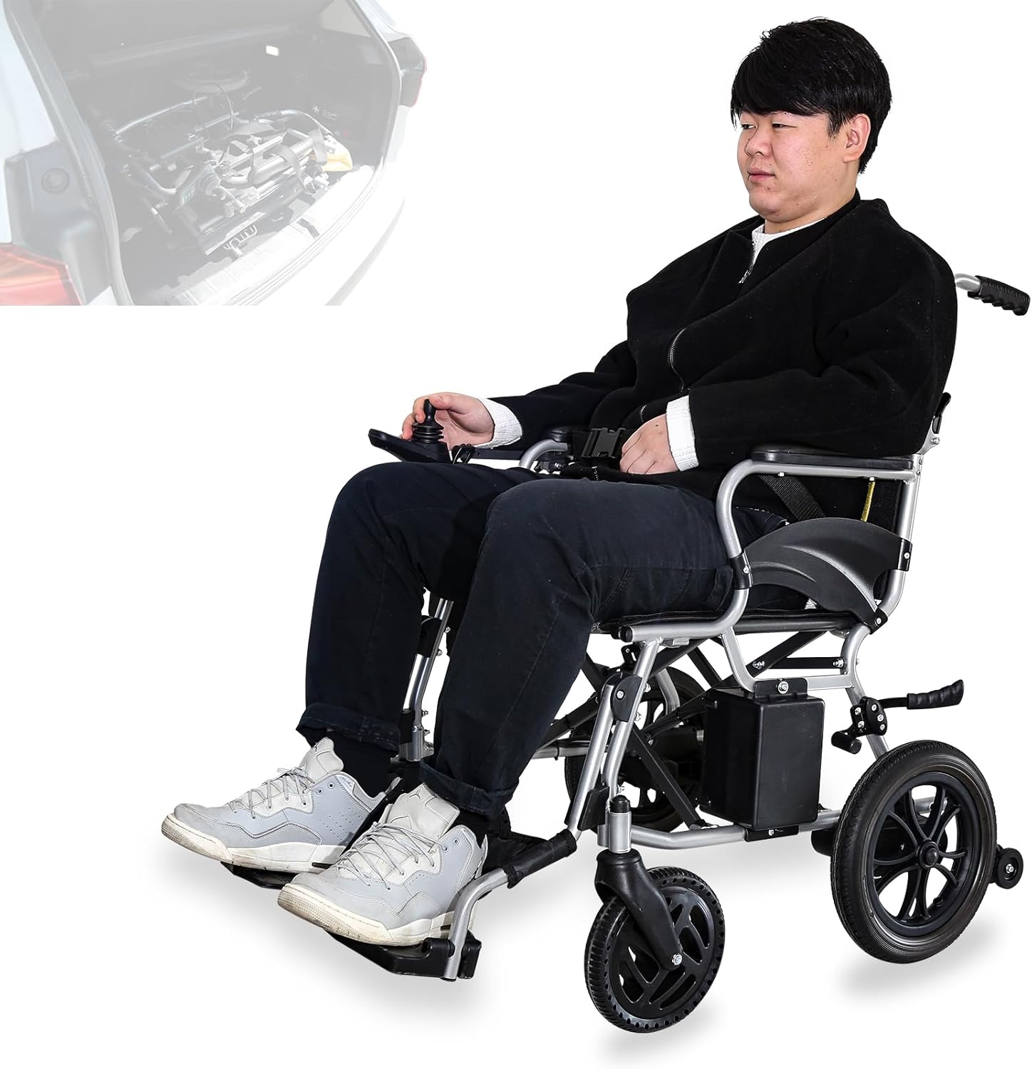 Convenient and Portable Design: This foldable electric wheelchair is compact and easy to fold, ensuring it fits comfortably in your vehicle's trunk. The tool-free assembly and sleek design make it an ideal choice for those seeking a portable, travel-friendly mobility solution.