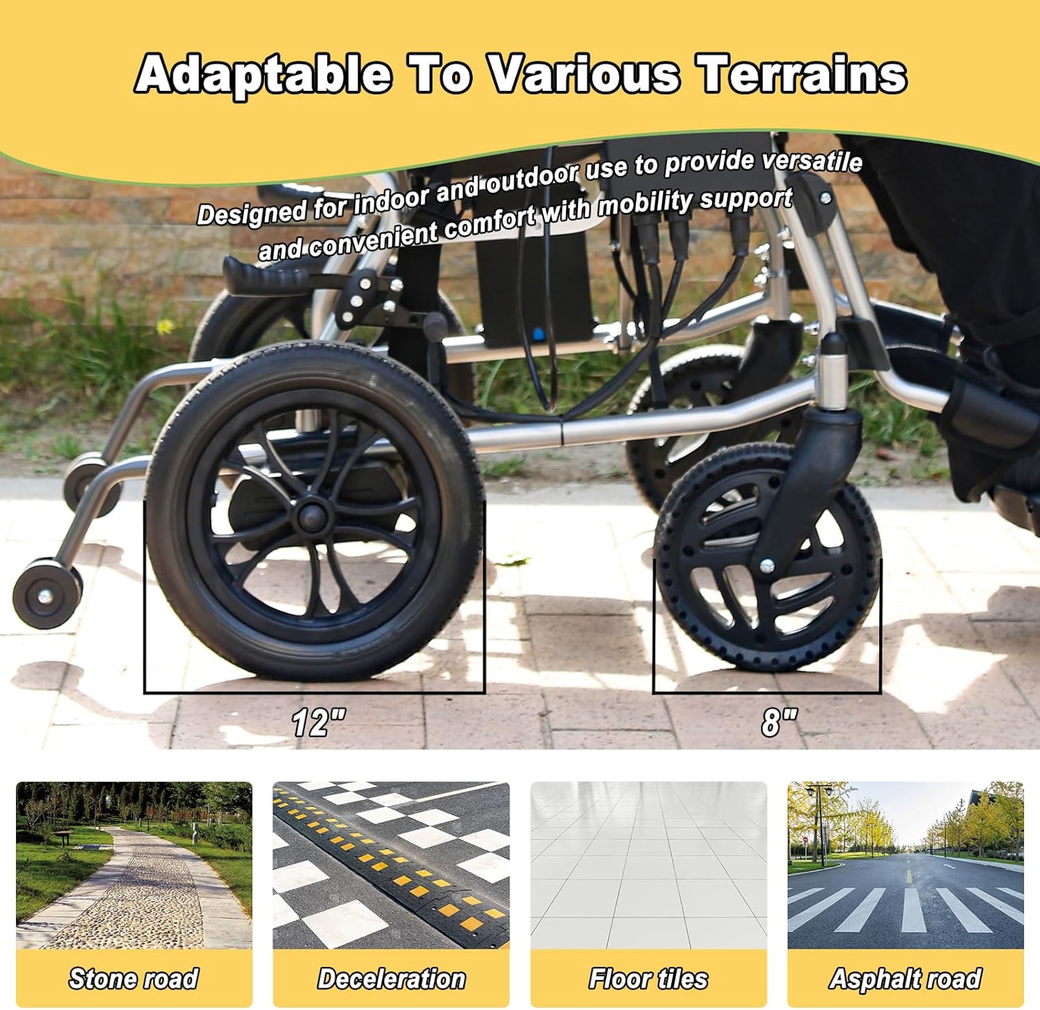 Powerful Performance: Powered by a 24Vx12AH battery and dual 150W motors, this electric wheelchair offers a range of 12.4 miles on a single charge. It's perfect for everyday errands and trips, providing reliable and consistent performance.