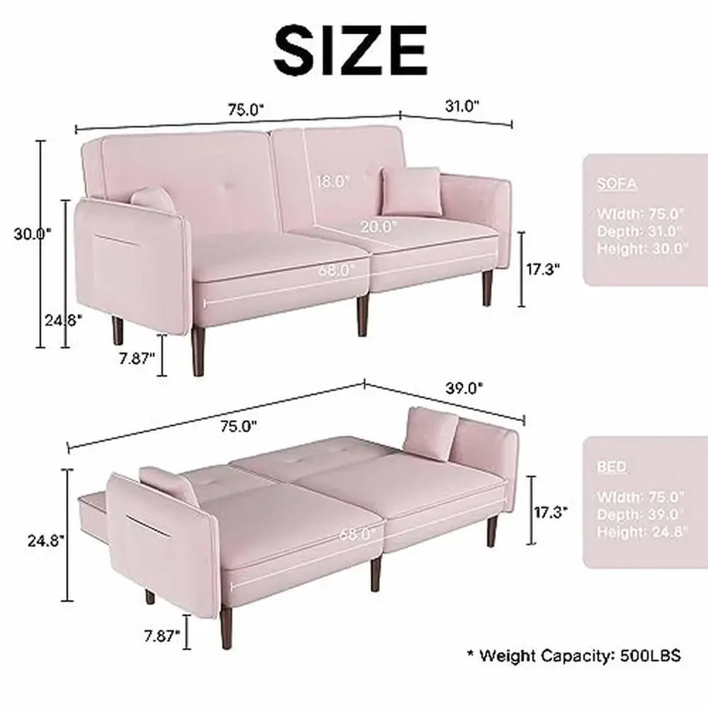 Modern Pink Velvet Convertible Sleeper Sofa – Ultimate Comfort and Versatility