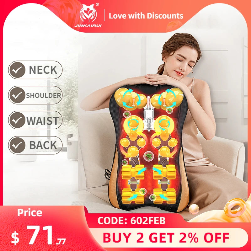 Multifunctional Electric Massage Cushion Neck Shoulder Waist Back Remote Control Deep Kneading Shiatsu Heating Pain Relieve Gift