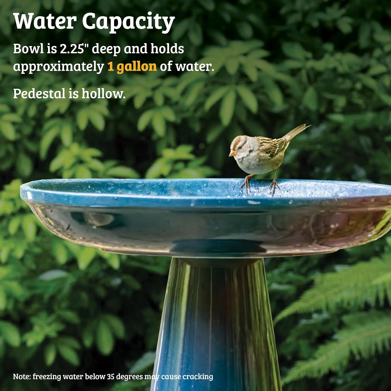 Proudly Made in the USA: Experience American-made craftsmanship. This high-quality bird bath is processed through an 18-hour, 2,000-degree kiln cycle to achieve its optimal shape.