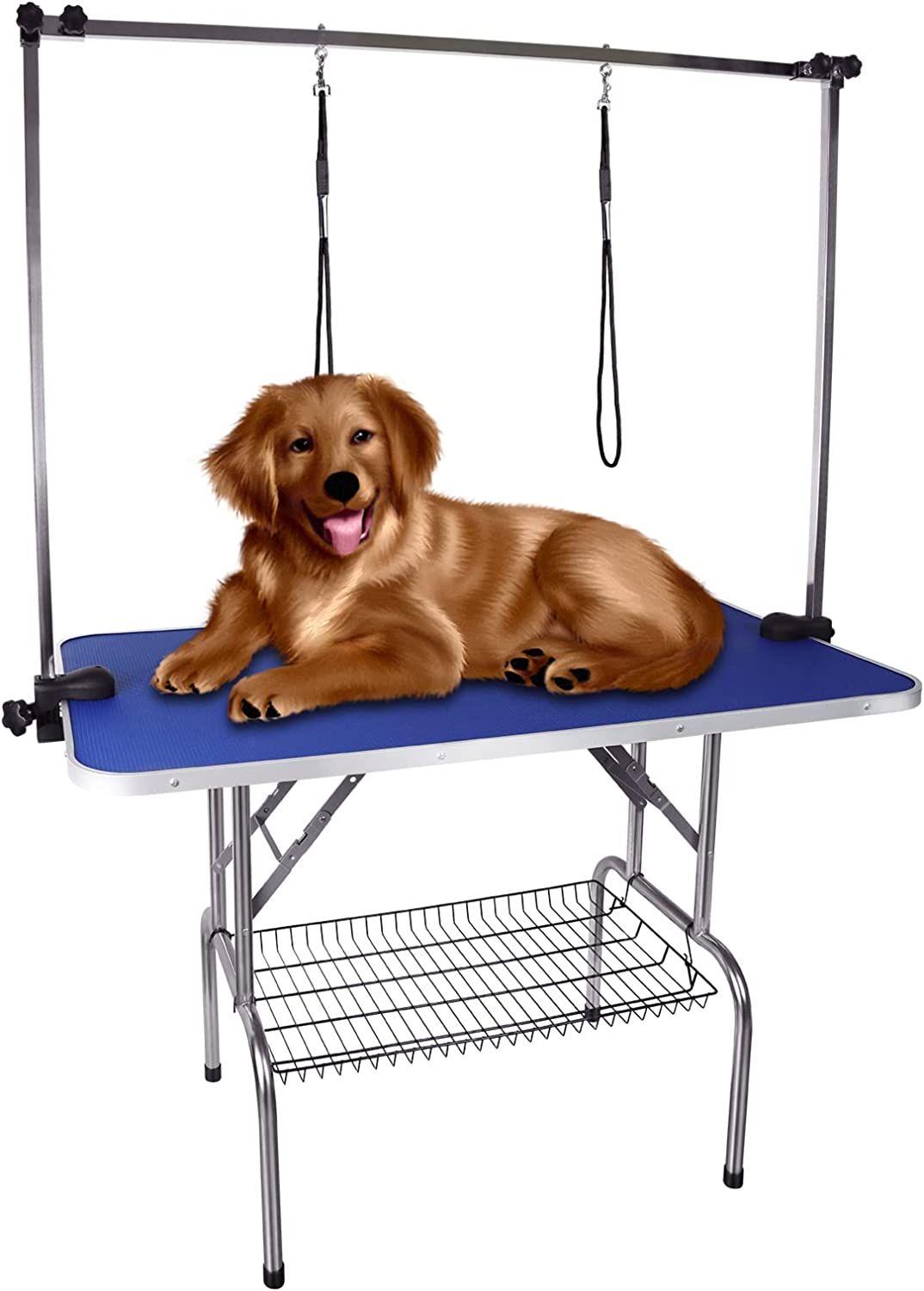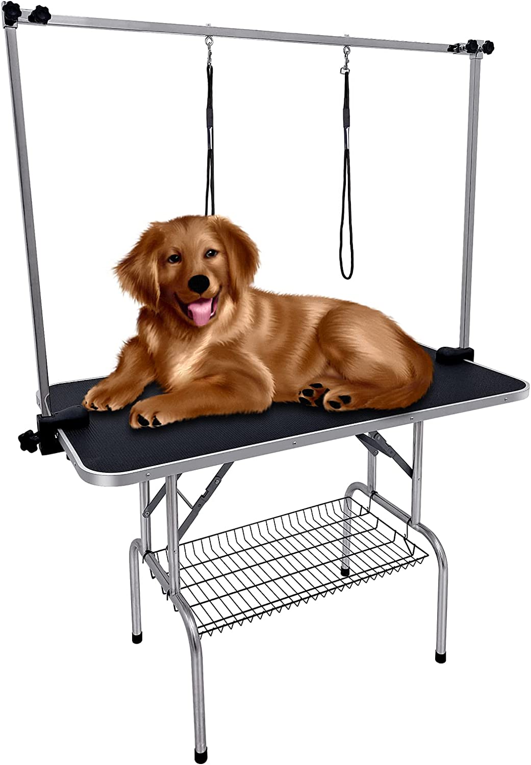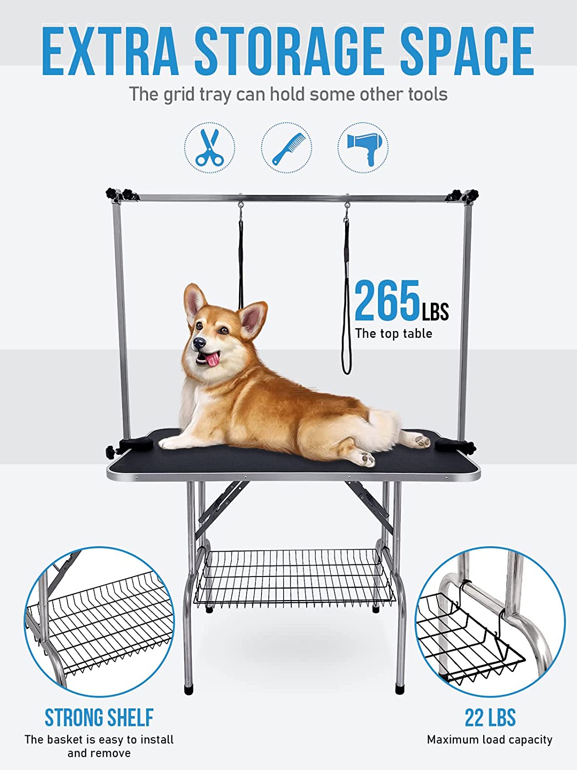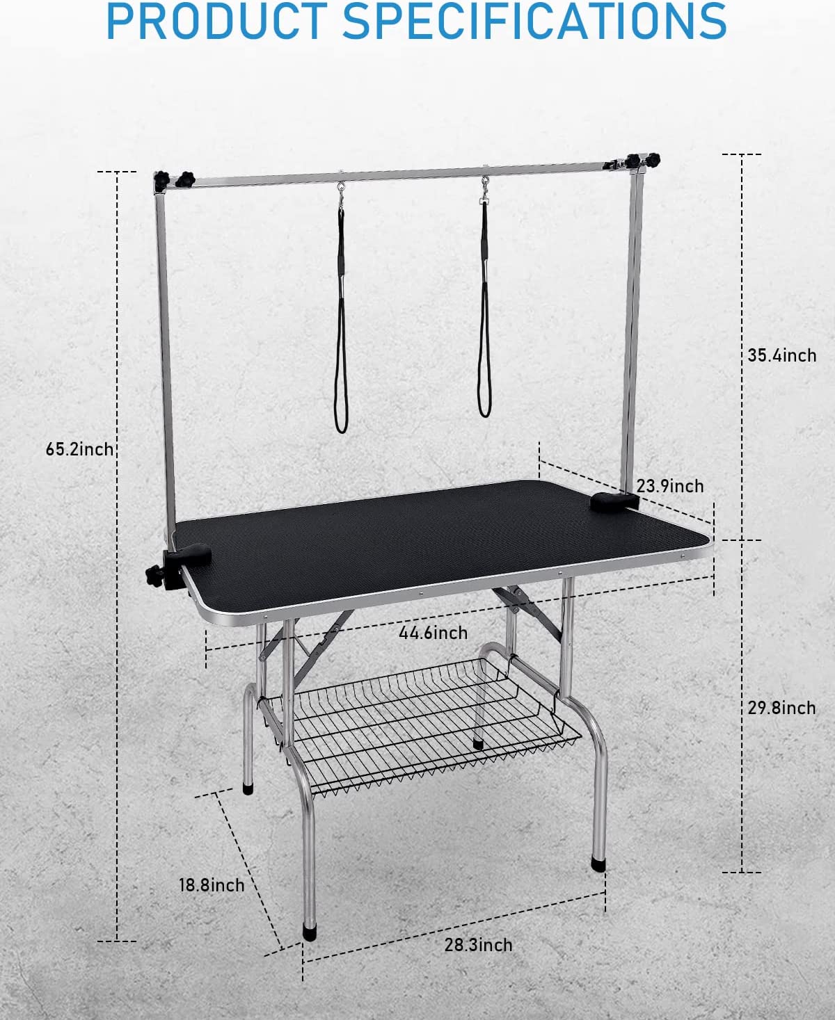 Pet Dog Grooming Table with Adjustable Height Arm, Loop & Mesh Tray, Foldable Heavy Duty Grooming Table I 45 x 24 Inch