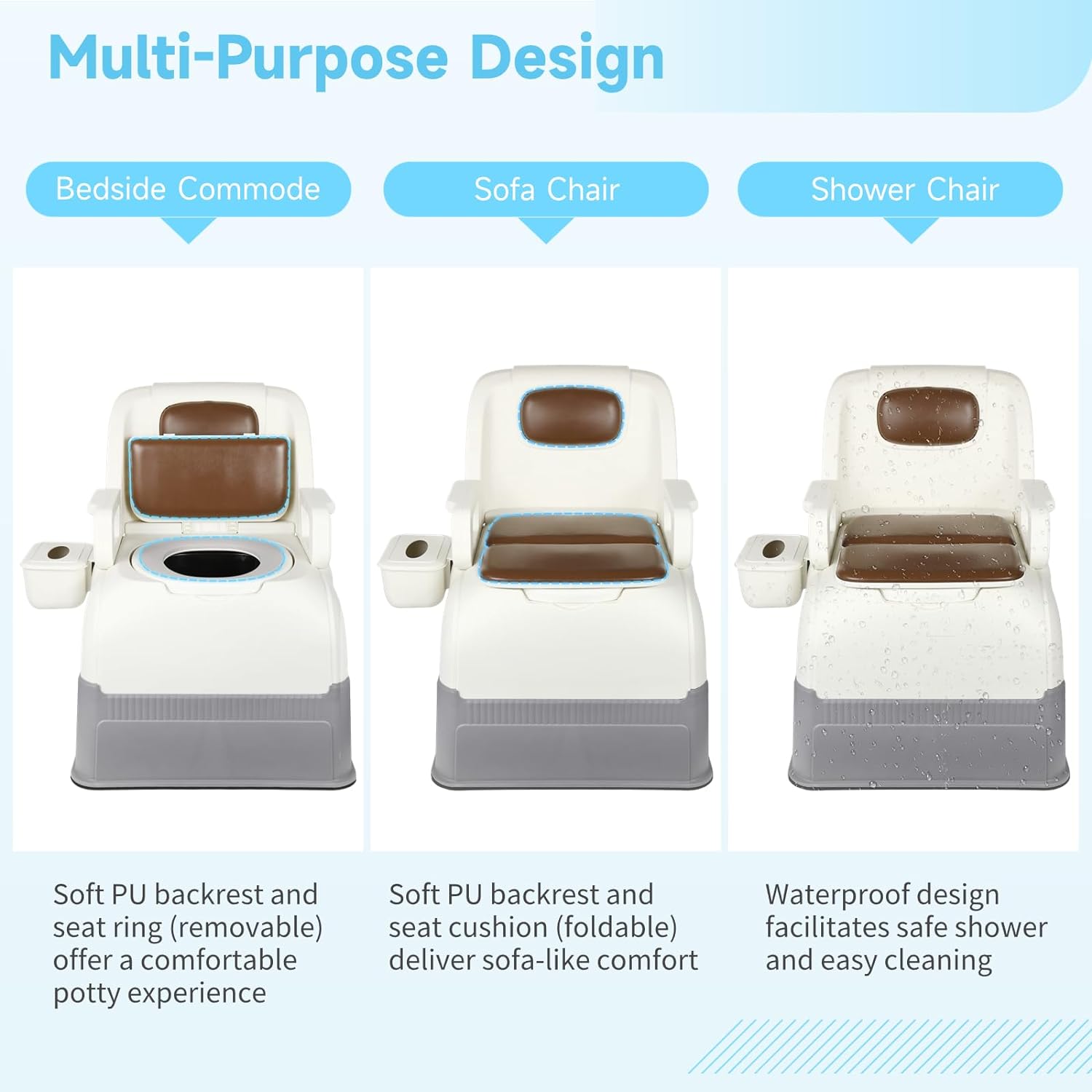 Versatile Applications: This multi-purpose soft seat toilet serves as a bedside commode, sofa chair, or shower chair as needed, catering to the needs of the elderly, pregnant women, patients, or individuals with mobility issues.