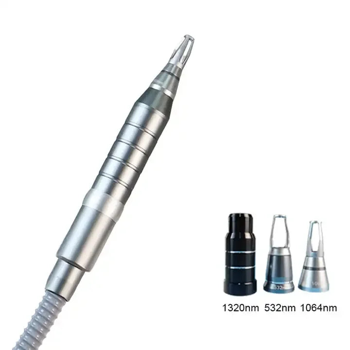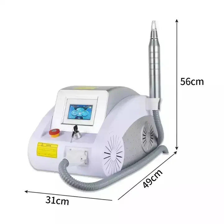 Equipped with 3 probes can removal all color tattoos and pigment. There are several stages for tattoo removal treatment, like red tattoo, you can use 532nm probe to do treatment, after one treatment it will become gray, then you can use 1064nm probe to remove tattoo totally.