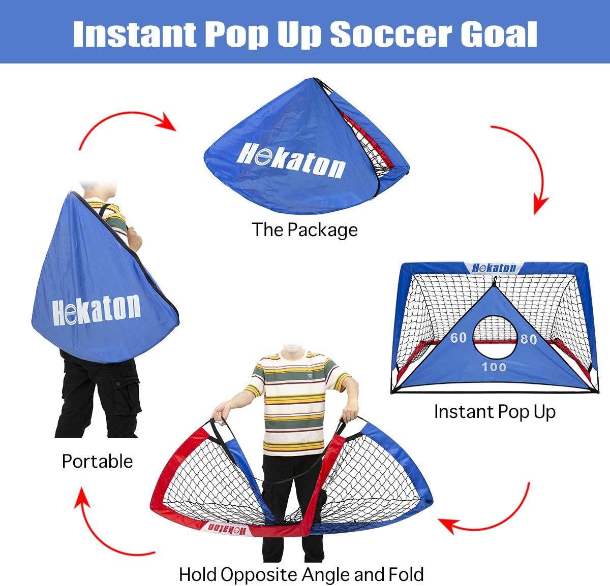 - INSTANT SETUP - You can set up or put away this soccer nets for backyard within seconds by following instructions. All you have to do is to twist it open or twist it flat into the carrying case. No need to spend hours installing before enjoy soccer time.