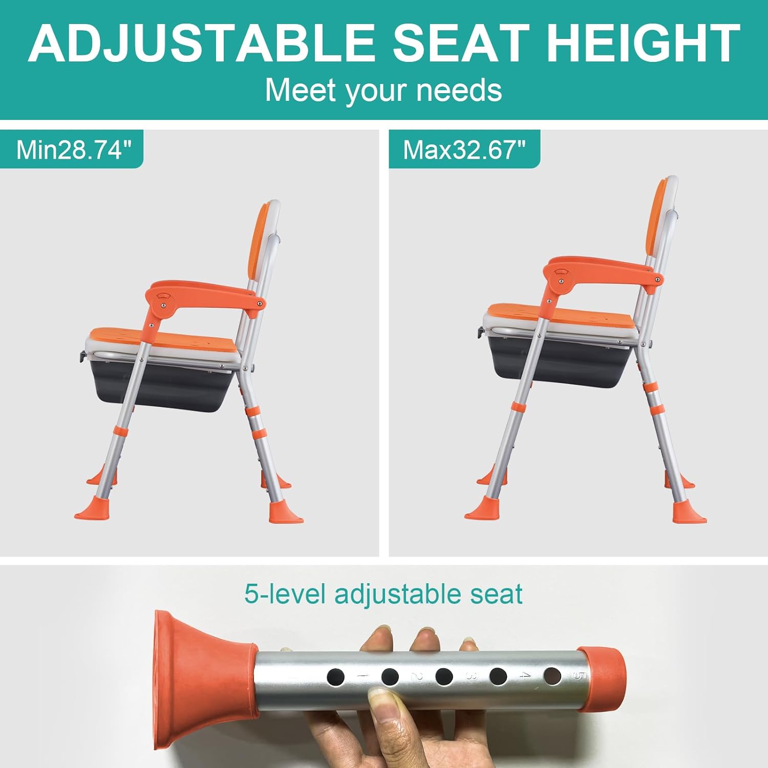Shower Chair for Elderly | Height-Adjustable Bathroom Toilet Chair | 4-in-1 Folding Non-Slip Bath Chair (Orange) Model M23144U