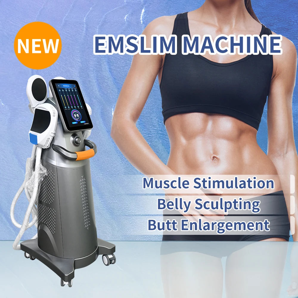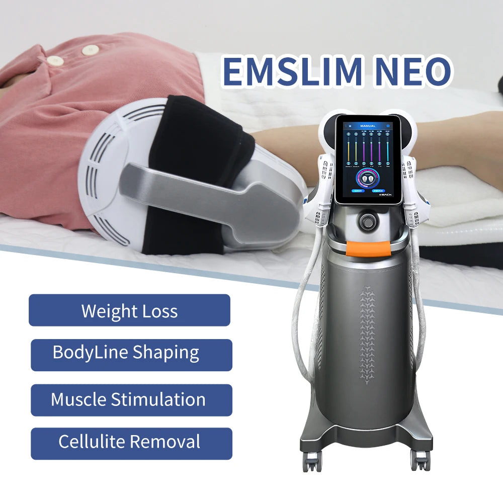 The Emslim Neo RF Muscle Sculpting Machine employs High Intensity Pulsed Electromagnetic (HIPEM) technology for body contouring, slimming, firming, and fat burning. This professional-grade device is ideal for beauty salons and physicians seeking the latest in non-invasive body contouring treatments.