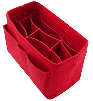 FIVE SIZES: MEDIUM: 9" (W) x 6" (H) x 5" (D). SLENDER MEDIUM: 10.7" (W) x 6.3" (H) x 2.8" (D). LARGE: 11.4" (W) x 7" (H) x 6" (D). SLENDER LARGE:13.2" (W) x 6" (H) x 3" (D).X-LARGE:13" (W) x 7" (H) x 6.5" (D). Portable and compact purse organizer perfectly for any brand, such as LV speedy neverfull gracefull longchamp pliage tote, mk, Gucci, etc.