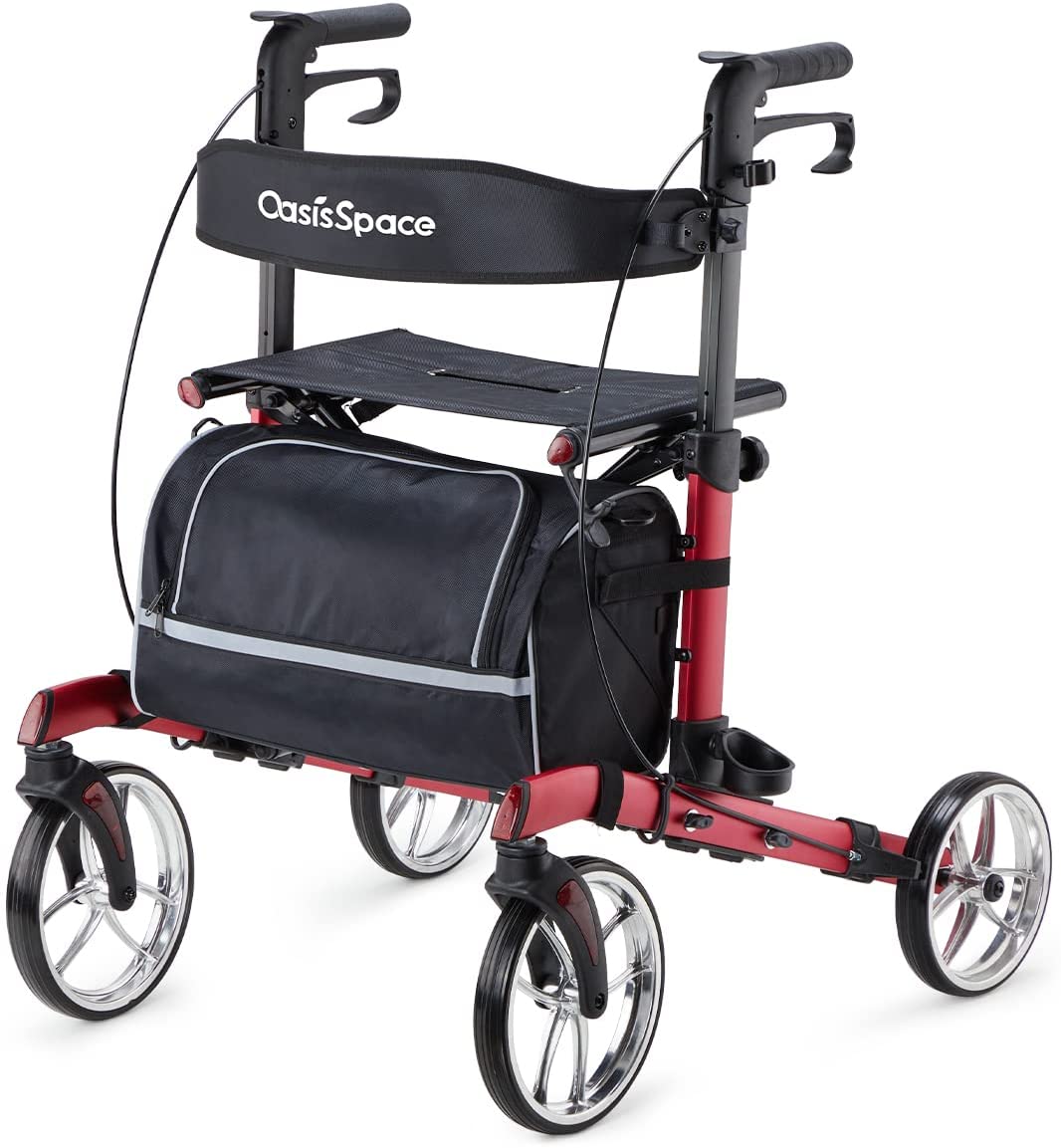 Seniors Rollator Walkers with Seat 10" Front Metal Wheels (Red)