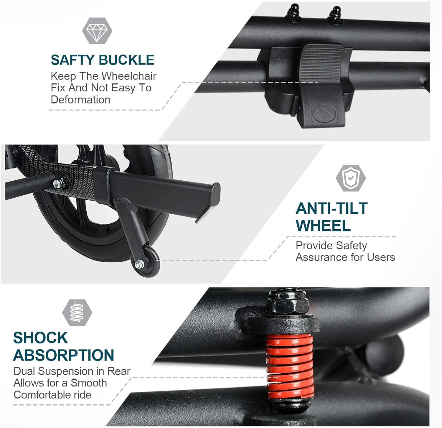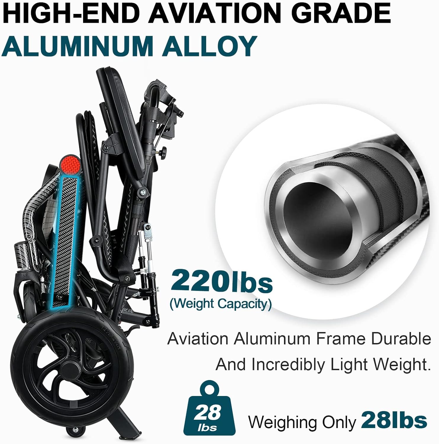 High Quality Construction: Built with a high-strength aluminum alloy bracket, our wheelchair combines durability with elegance. The carbon fiber transfer process enhances its strength while maintaining a sleek appearance.