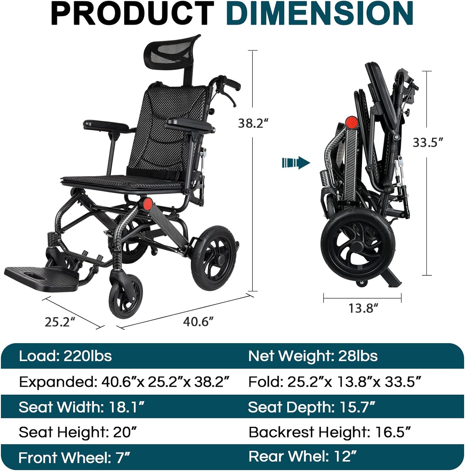 Experience comfort and convenience on the go with our Super Lightweight Reclining Travel Wheelchair, crafted for adults and seniors seeking mobility and support. Designed in sleek black with a modern touch, this wheelchair weighs a mere 28 pounds, making it easy to transport and maneuver.