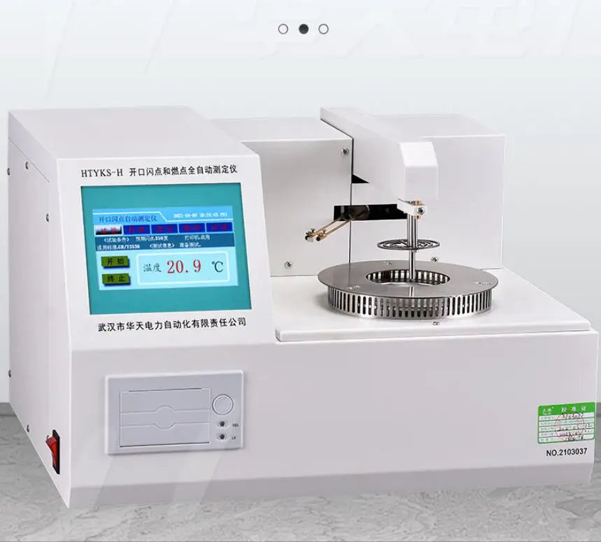 Working Principle: Following the heating curve specified in GB/T3536-2008 (ASTMD92) and GB/T 267-88, the CPU-controlled heater heats the sample while the color LCD displays relevant parameters. When the sample temperature approaches the flash point value, the electric ignition system ignites the sample automatically, with the instrument locking the flash point value upon ignition and initiating automatic cooling.