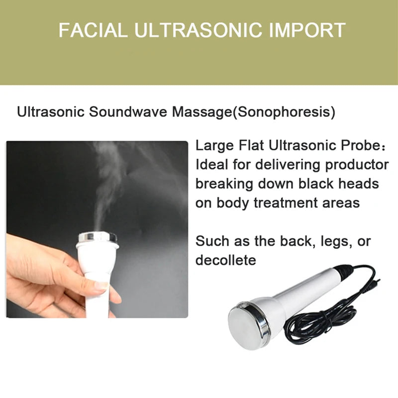 - Ultrasonic Therapy: This device generates deep-penetrating ultrasonic waves through high-frequency vibrations. These waves penetrate the skin, converting sound energy into gentle heat energy that massages skin cells. The warmth promotes micro blood circulation, accelerates metabolism, enhances nutrient absorption, and activates skin cells, all while inhibiting bacterial growth.