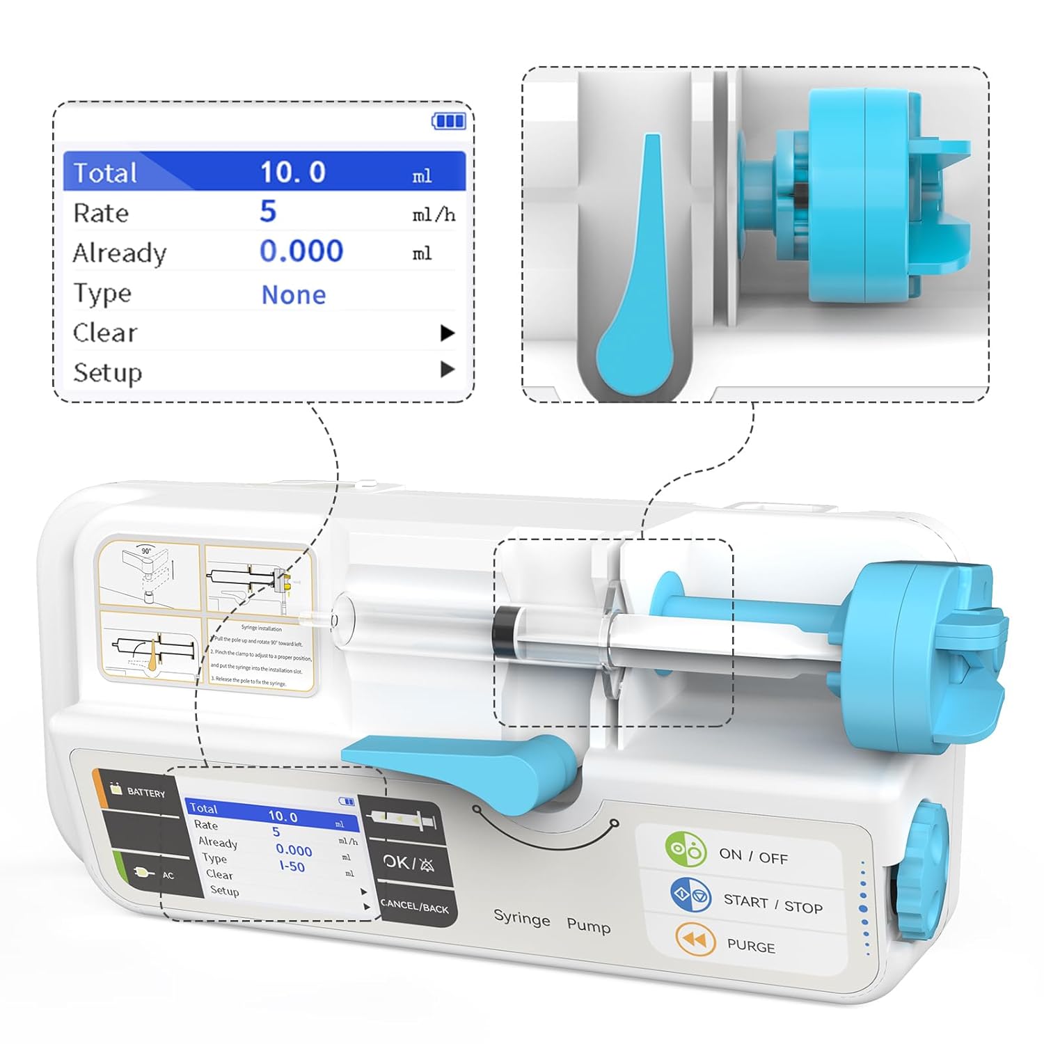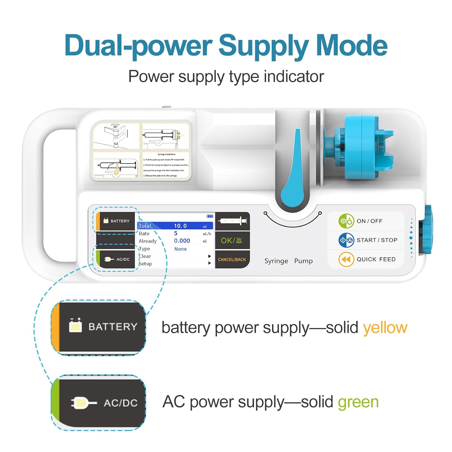 - Portable Design And Small Size:The weight for this veterinary infusion pump is 4lb.It is very convenient to carry.With dual power mode,AC/DC and built-in lithium battery.You can use it for mobile use.